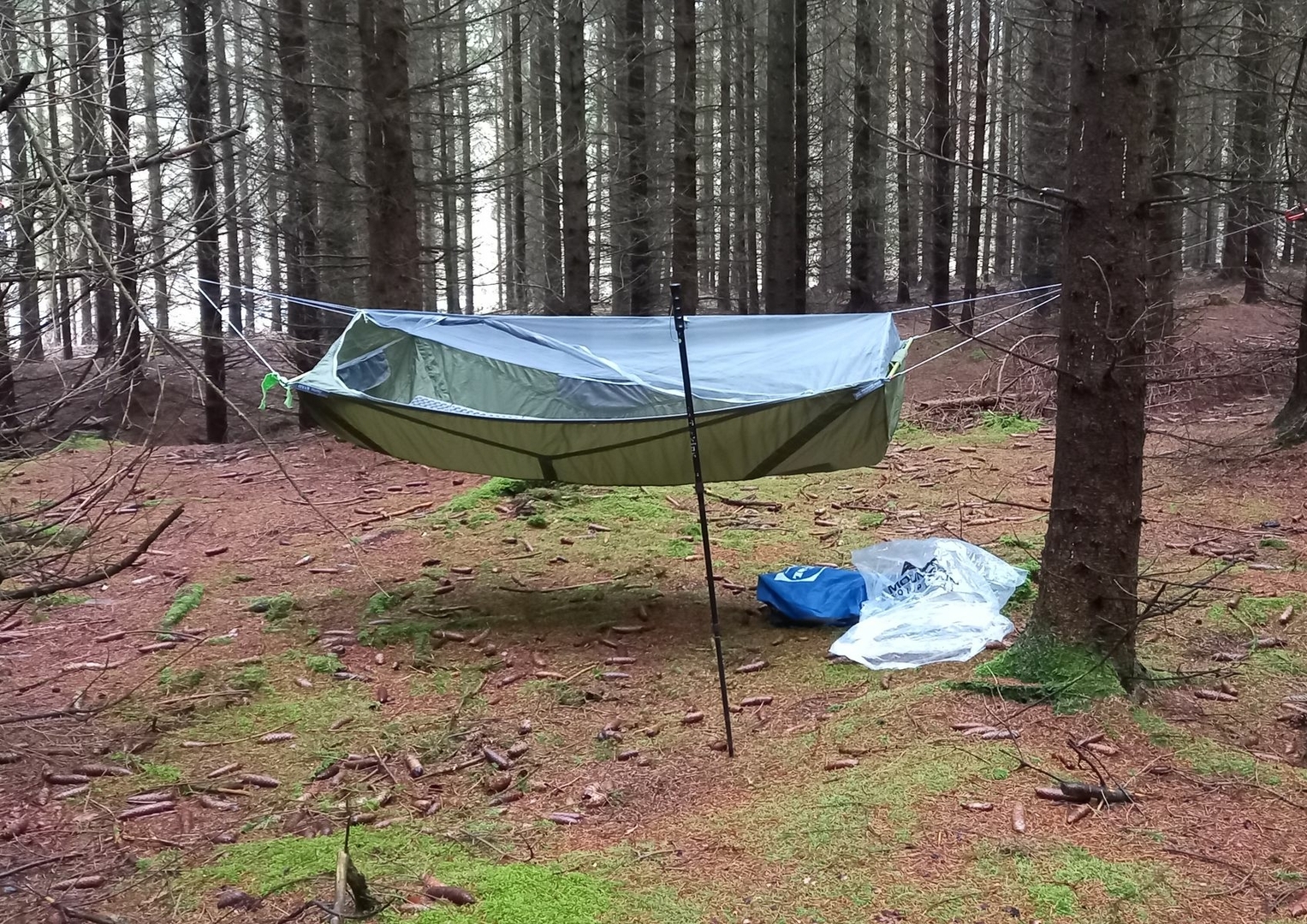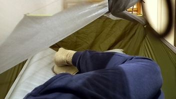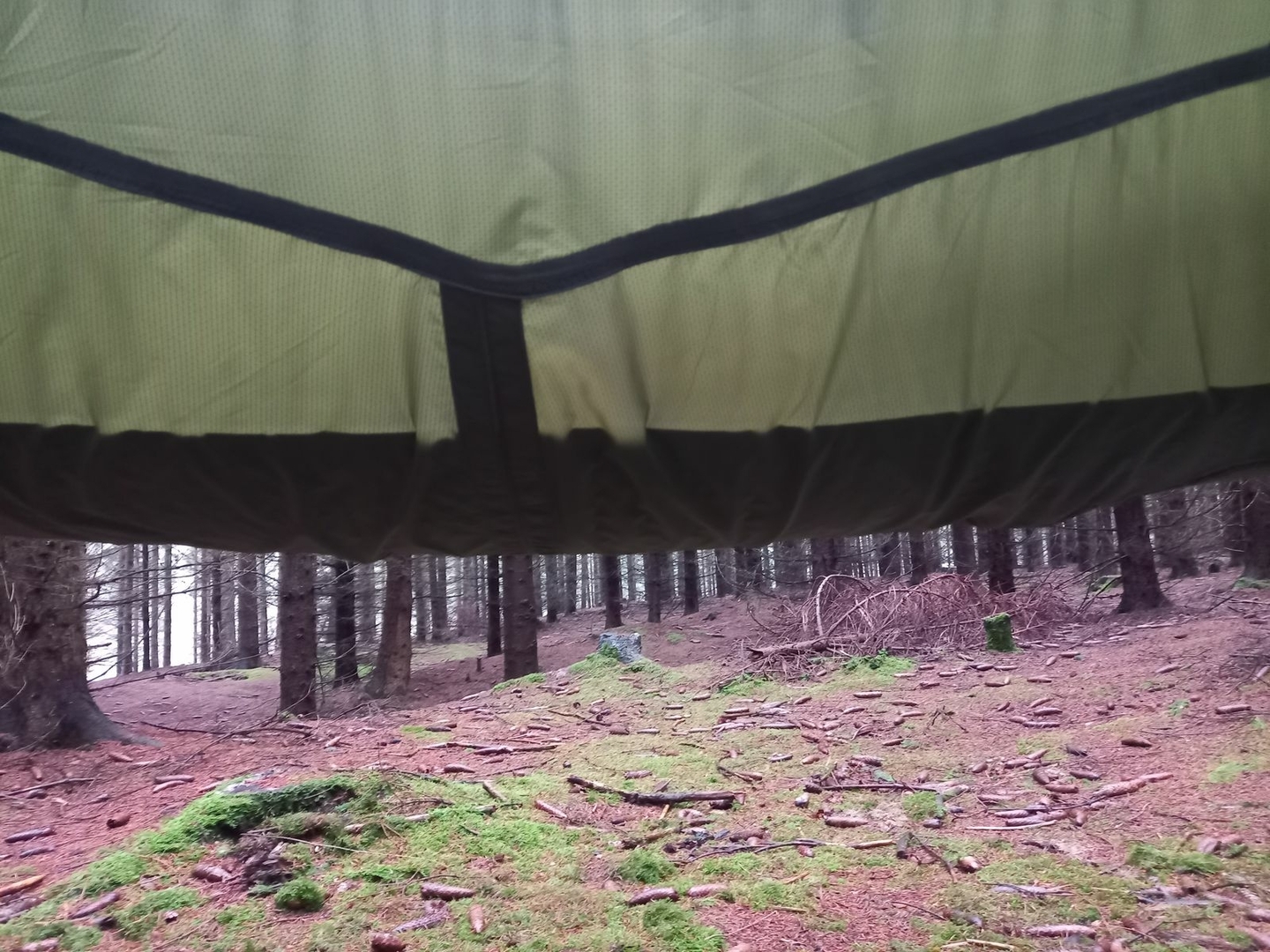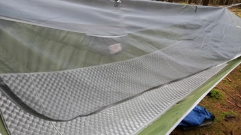 Das Setup hat neulich gut funktioniert auf dem Boden als Bug Bivy in einer Sächsischen Schweiz Boofe und eine Nacht später als Hängematte. Die abgebildete Isomatte ist eine Decathlon Faltisomatte mit einer R Wert von 2,2 und einer Breite von 55cm. Bequemer und wärmer waren meine anderen beiden Isomatten: eine TAR Ridgerest Deluxe Gr. L, R Wert 3,1 und eine TAR Neo Xtherm Max Gr. RW, R Wert 6,9.