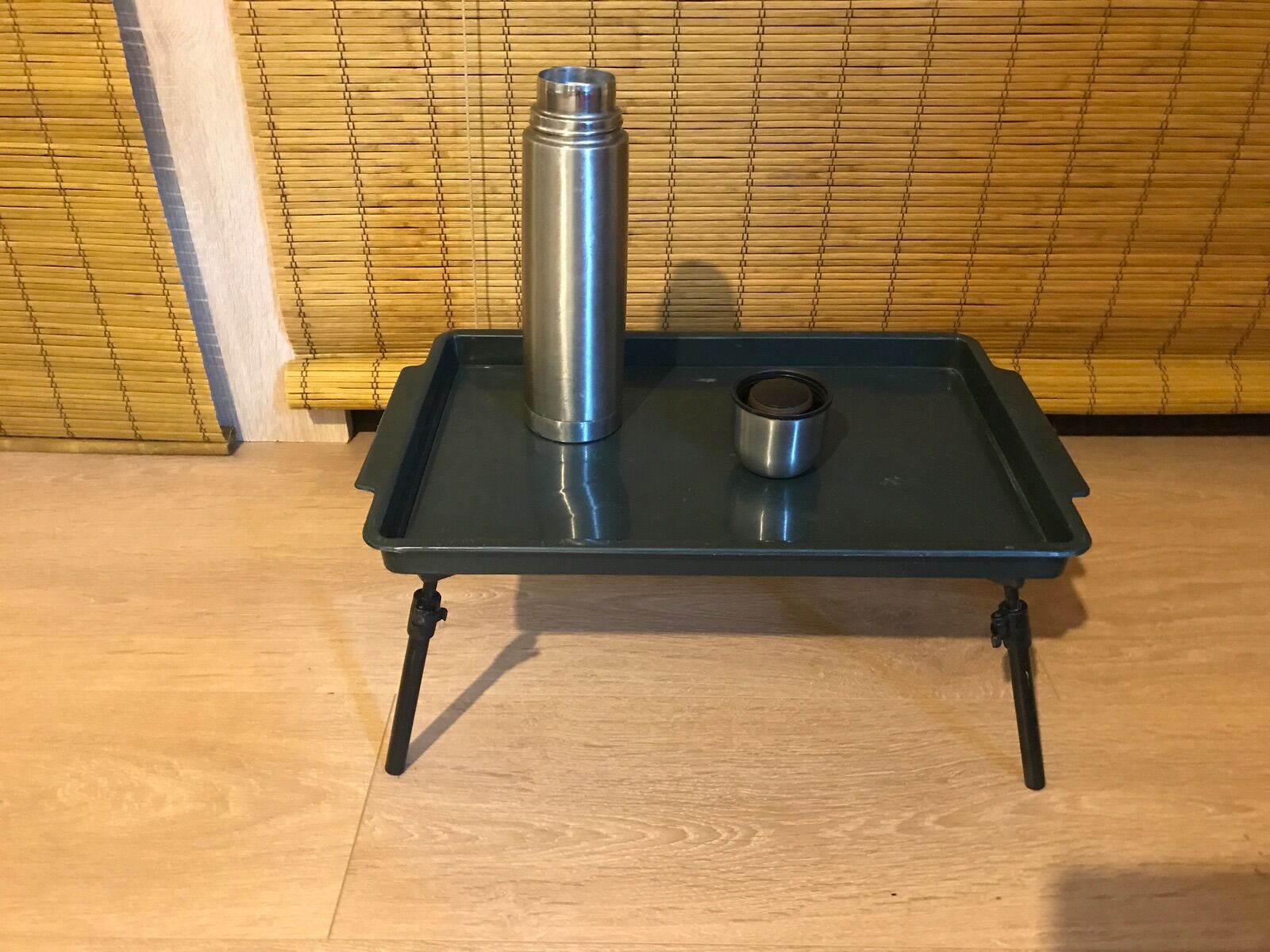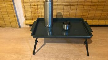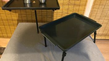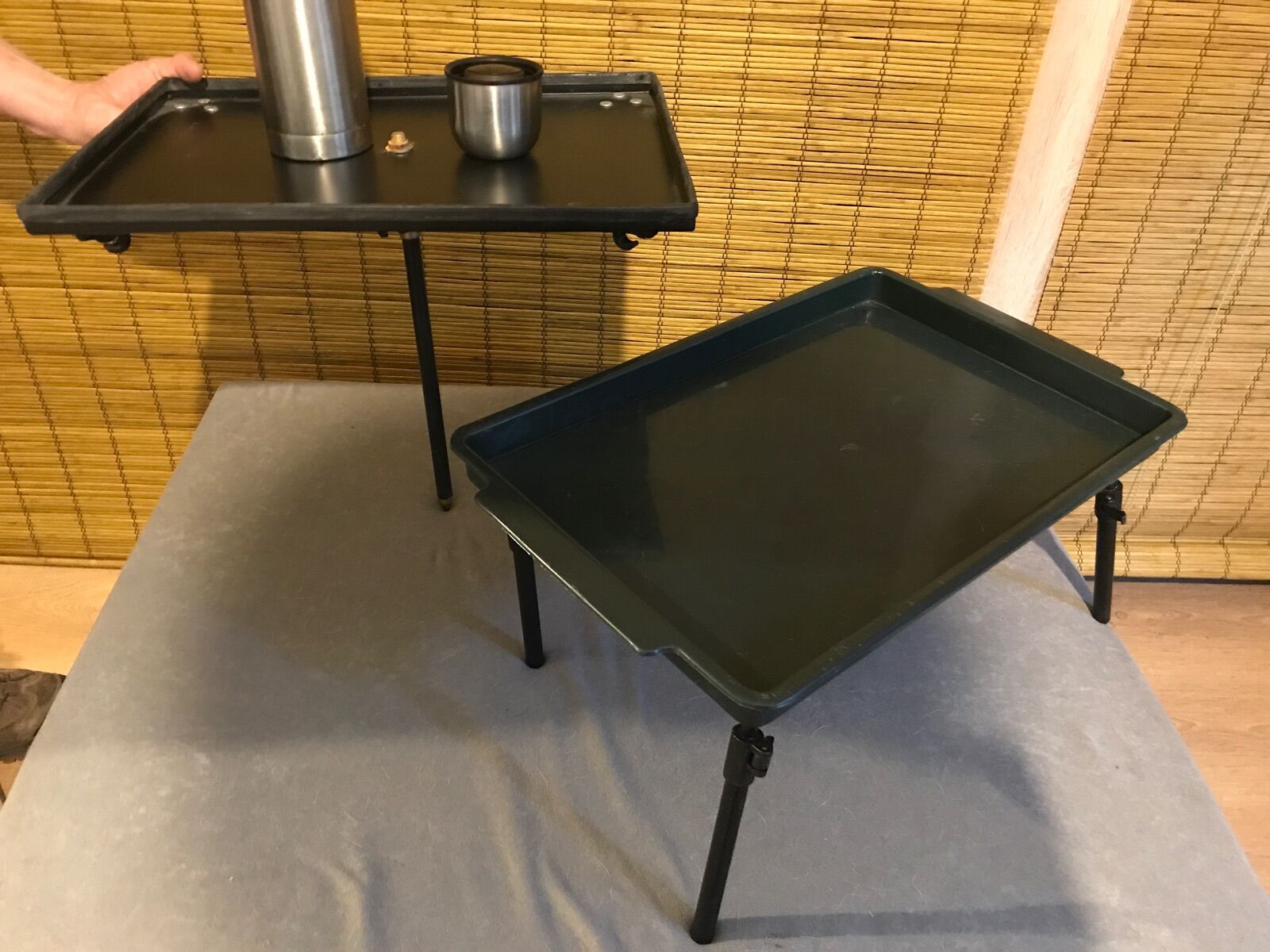 sollte jemand eine Alternative zum Schwarze Biene Tisch suchen und ein bisschen basteln nicht scheuen der kann mal unter Bivvy table/ Tisch bei Google suchen. Wer sie noch nicht kennt: Das sind kleine bis mittel große Beistelltische zum Angeln. Die 4 Füße sind anklappbar und jeder ist einzeln in der Höhe verstellbar.