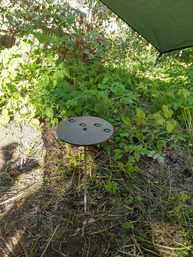 Ich habe bei einem Tisch die Füße entfernt, in der Mitte ein Loch gebohrt und dann einen sogenannten Bankstick Adapter ein geschraubt. Jetzt kann ich einen höhenverstellbaren sogenannten Bankstick von unten einschrauben und fertig ist mein Tisch. Die Bivvy tables gibt es in unterschiedlichen Größen und verschiedenen Materialien z.B. Kunststoff, Alu, Blech oder VA.Diese Möglichkeit liegt aber Gewichtsmäßig über den Schwarze Biene Tisch.