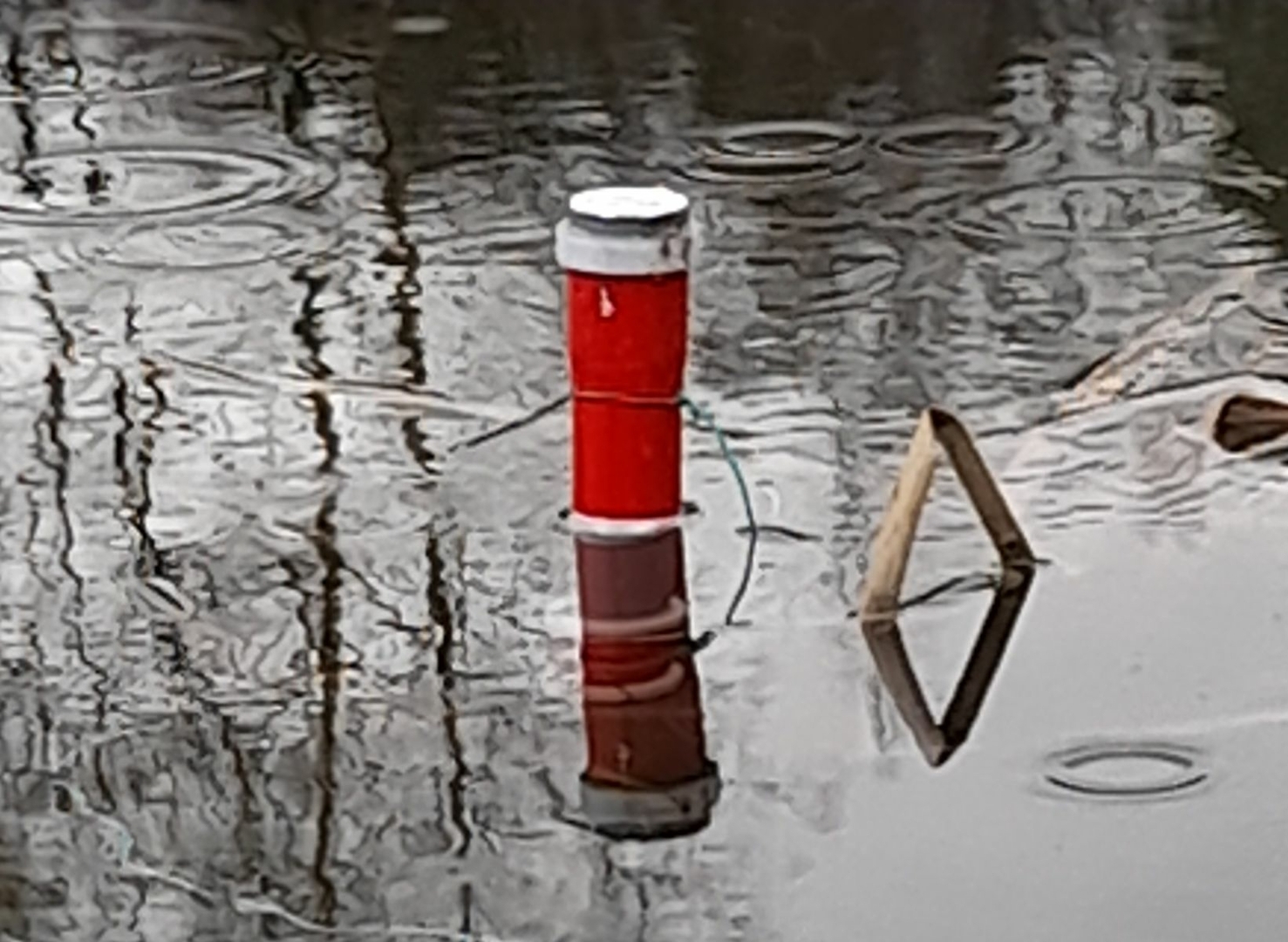 Aktuell nutze ich draussen eine Art kleiner Boje aus 50'er HT-Rohr und schiesse mit Mudballs auf einen Tümpel meiner geliebten Kieskuhle.