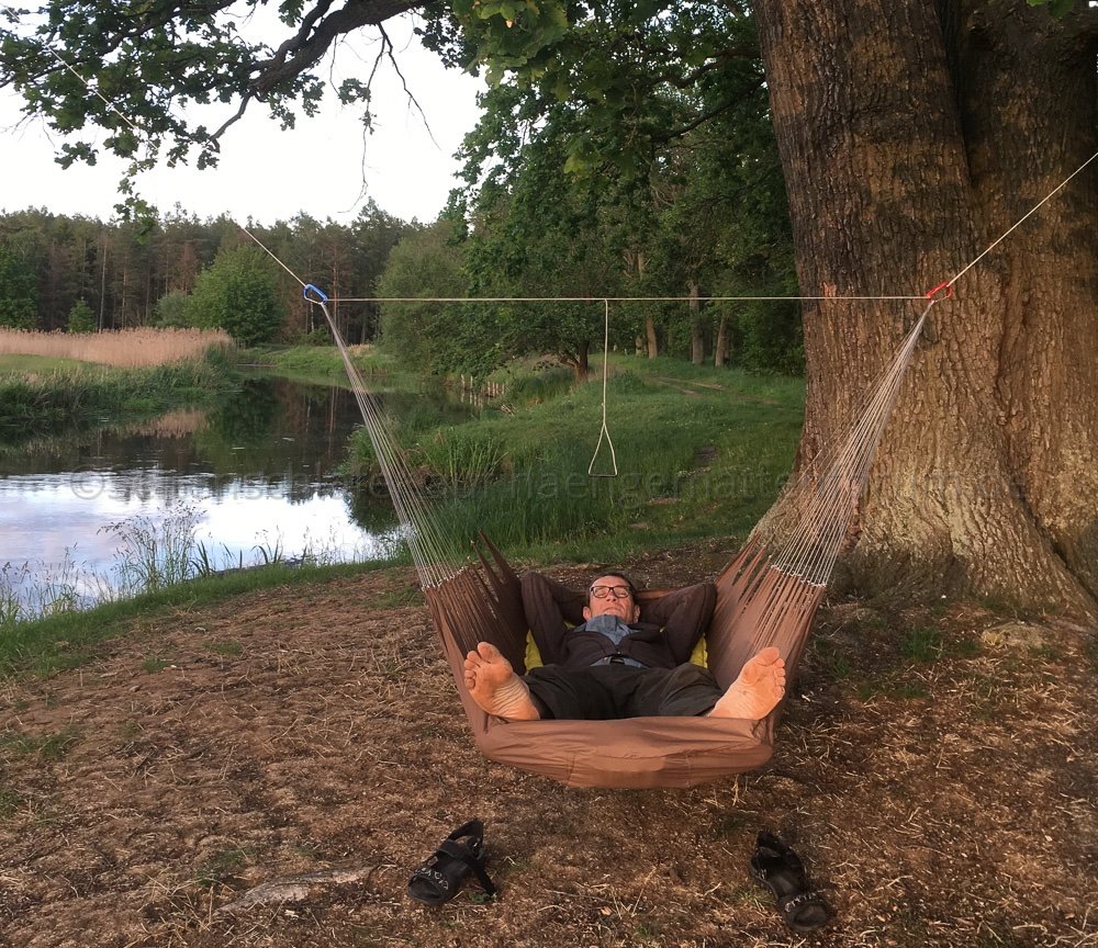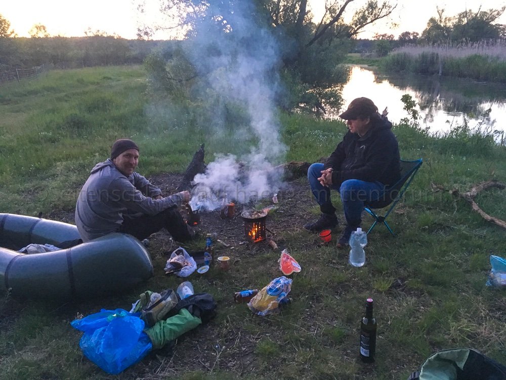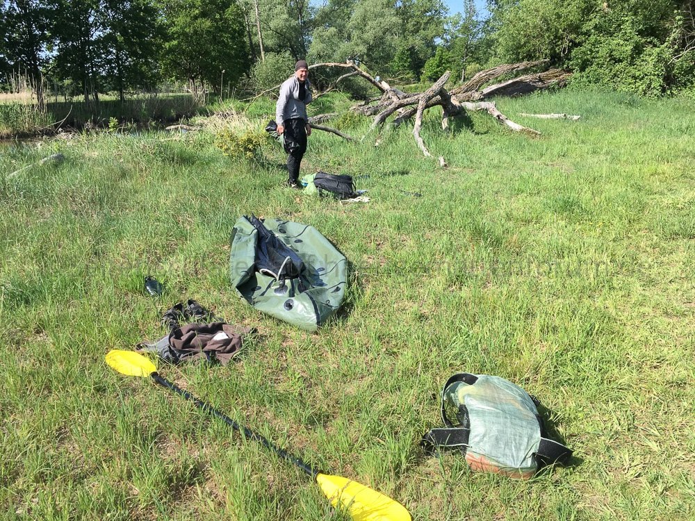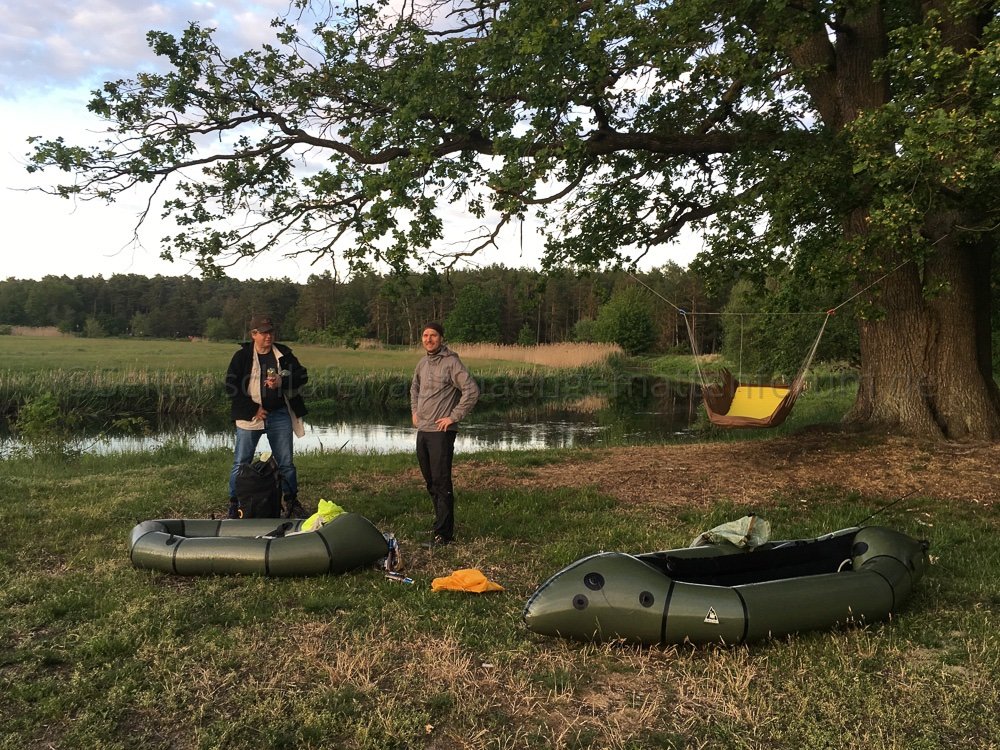 Hier ein paar Impressionen von einem Overnighter zum Himmelfahrtstag mit Omorotschka. Vorbei an einem früheren Hängplatz der Berliner Stammtischrunde haben wir einen Platz an der Müggelspree mit Sonnenuntergangsgarantie per Packraft angesteuert. noodles kam als Durchreisender spontan dazu.