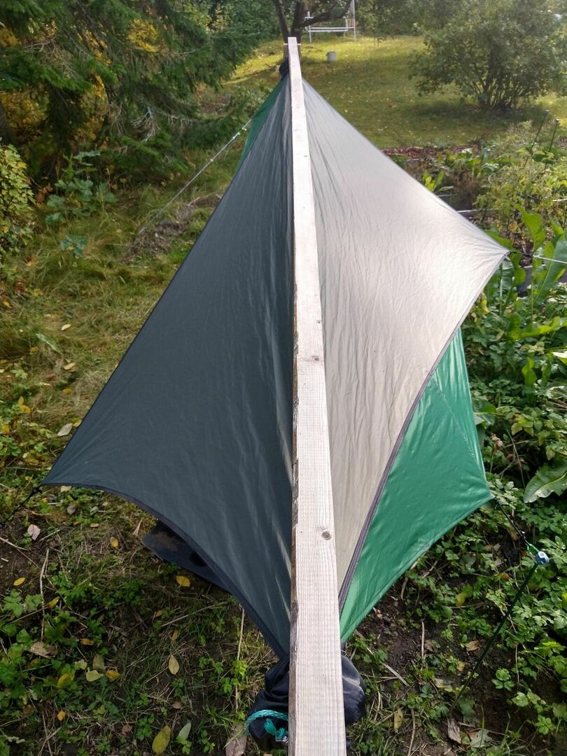 Das mit den Dellen kann ich nun auch bestätigen, aber zum Glück v.a. zwischen den Halbseitenabspannern also an den Seiten, da staut sich zumindest kein Wasser. Liege gerade in meinem Diamond-DD, und so richtig straff wurde es nicht. Ridgeline unten drunter ging noch halbwegs, aber da momentan Wolkenbruch-artige Wassermengen vom Himmel kommen, und rein um zu verstehen, was denn da nun der Unterschied ist, habe ich das nochmal geändert und das Stöffle noch unter die Ridgeline drunter gezogen. Ist m.E. schlechter geworden mit den Dellen.