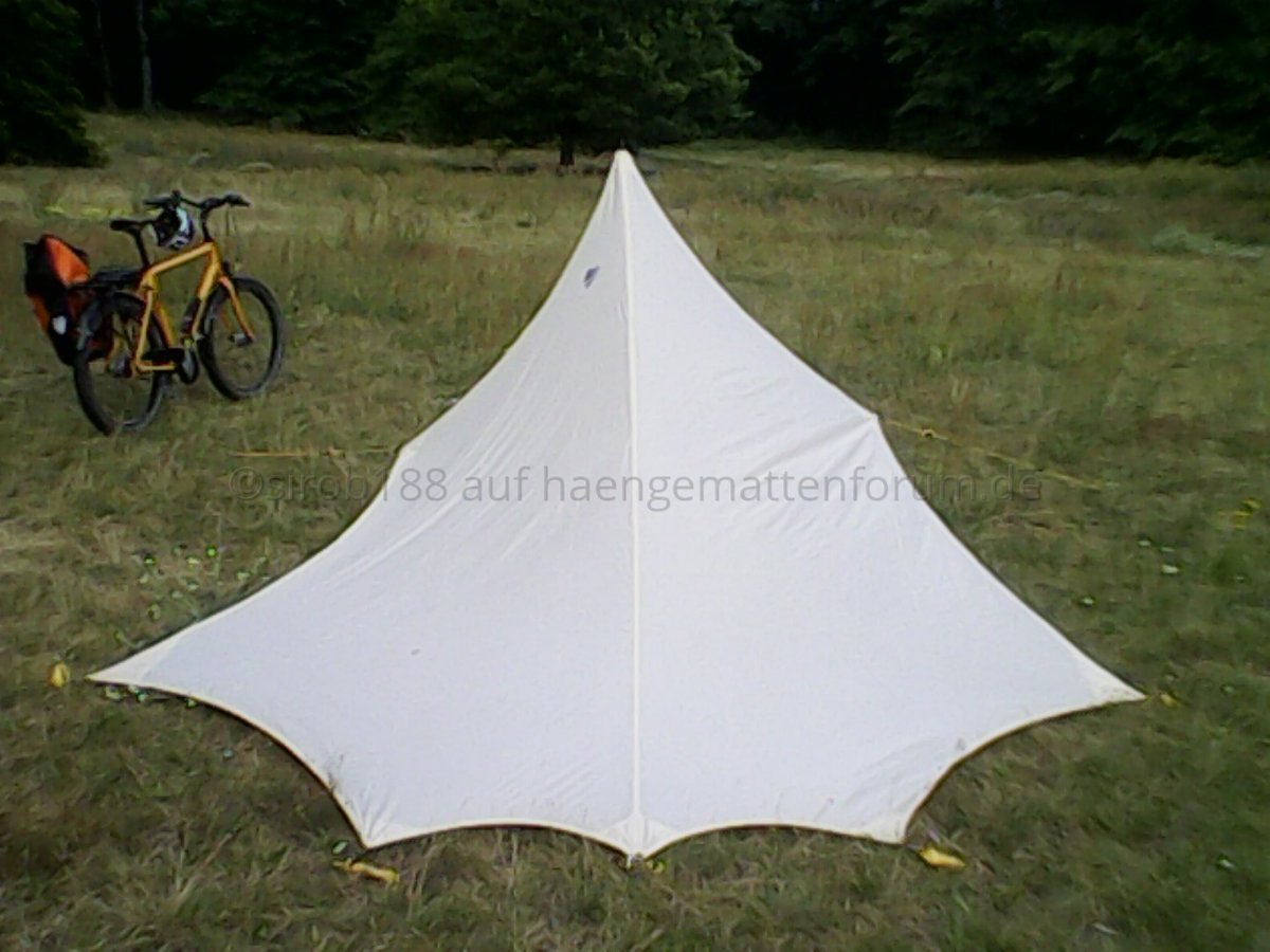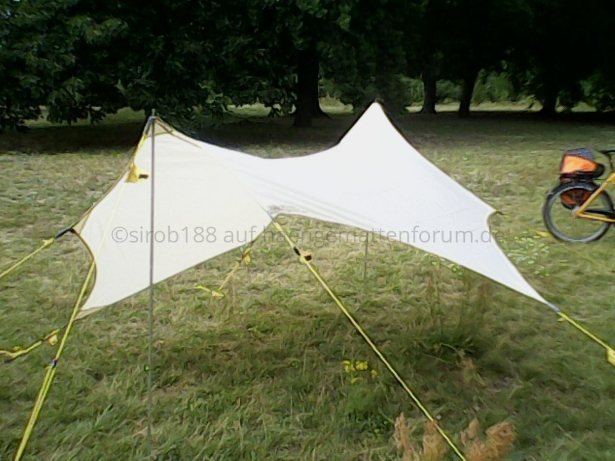 ich habe mein 2012er Tarp, was ich damals als Vorzelt zu meinem Zelt gekauft habe, mal wieder aufgebaut.