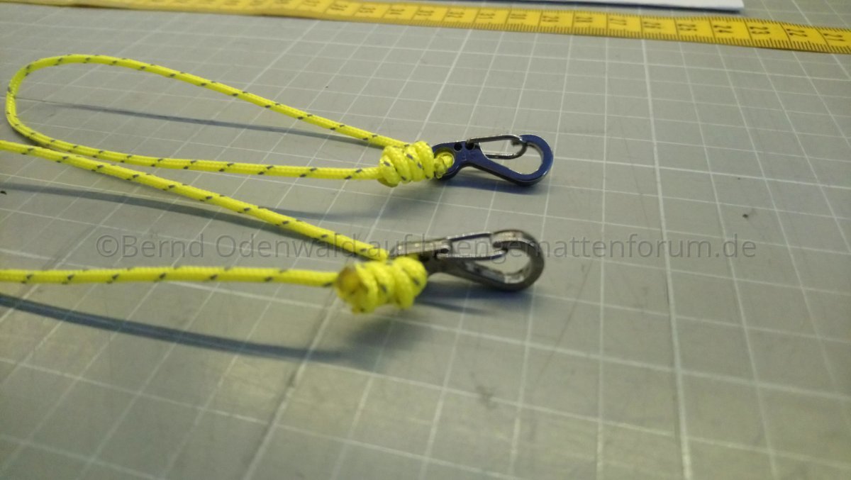 Die Schnur wurde etwas länger um den Klemmknoten besser legen zu können.