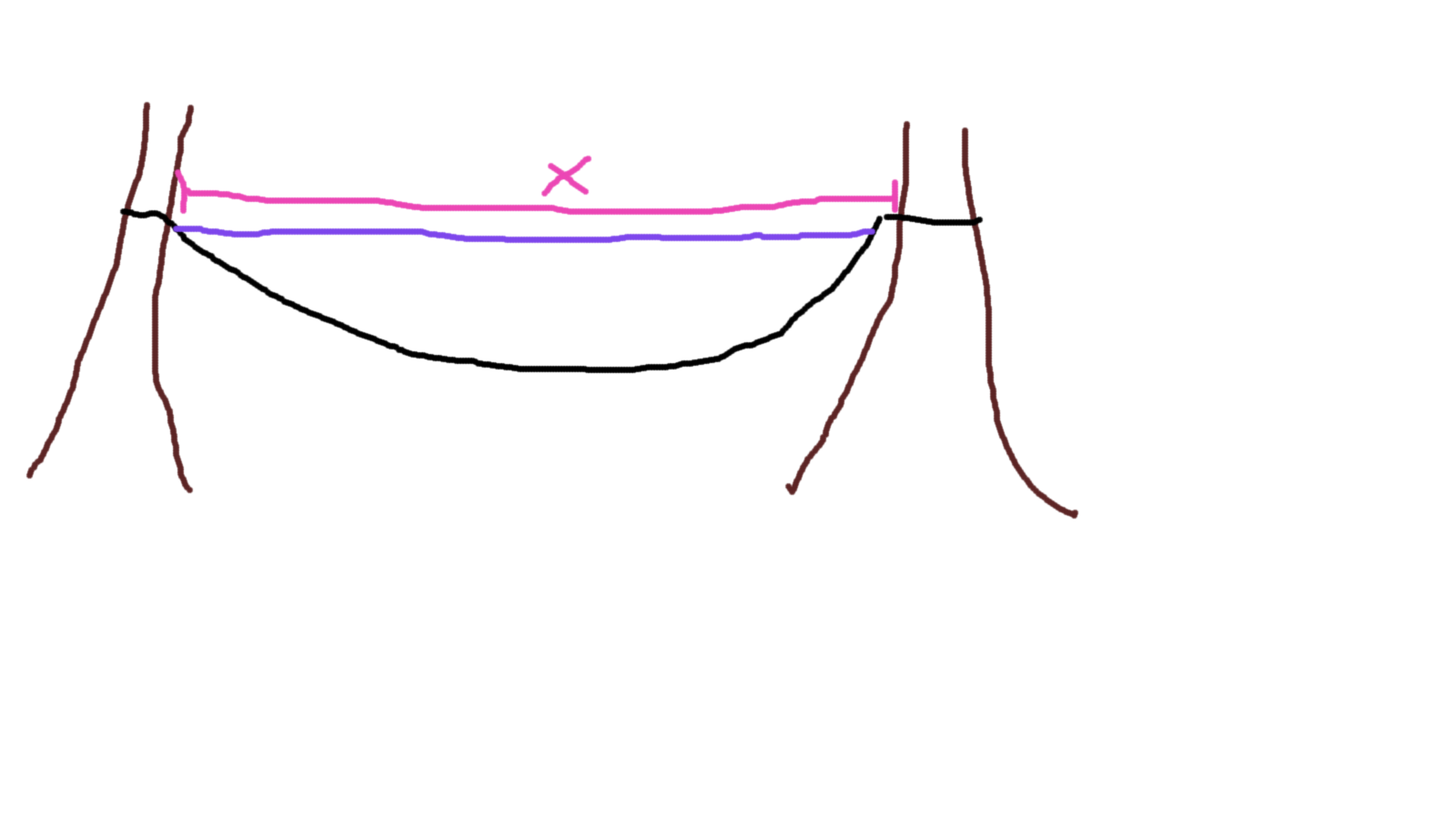 Wenn nun aber der Baum Abstand X größer wie die Tarp Länge wird, muss ich nun den Abstand zum Baum vergrößern, da ich ja nicht das Tarp plötzlich vergrößern kann. (Der Abstand zur HM bleibt dann "konstant".)