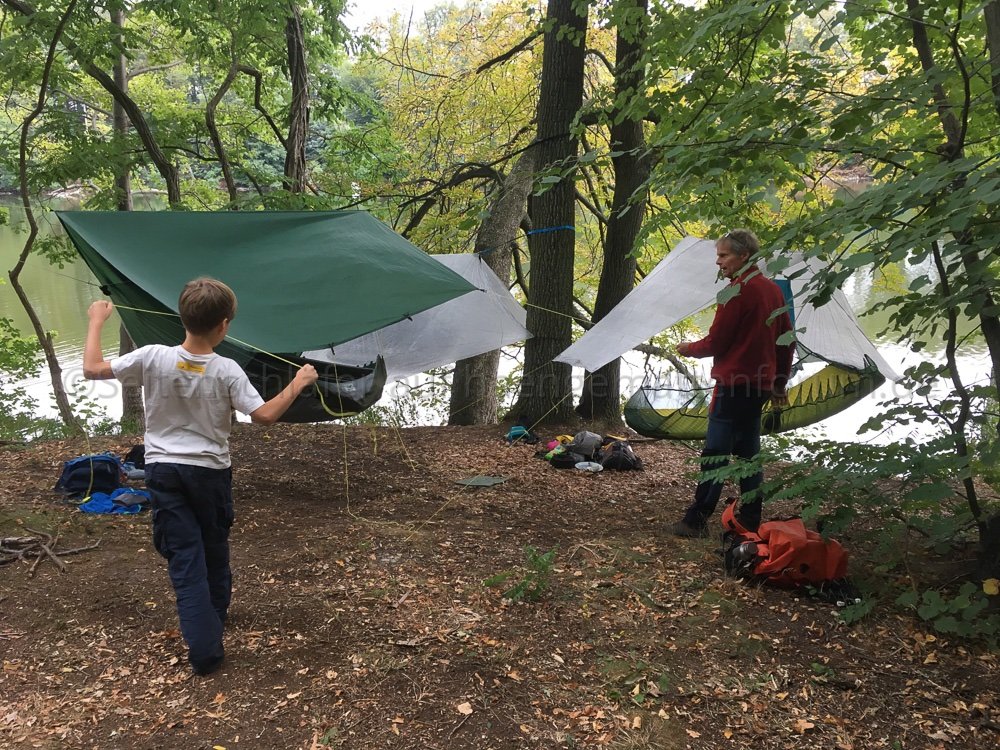 Drei Cross Hammocks und eine Hammock Tent nebst Tarps bildeten die Schlafstätten.