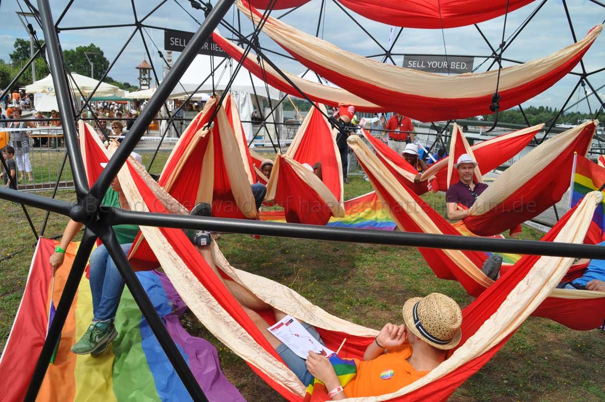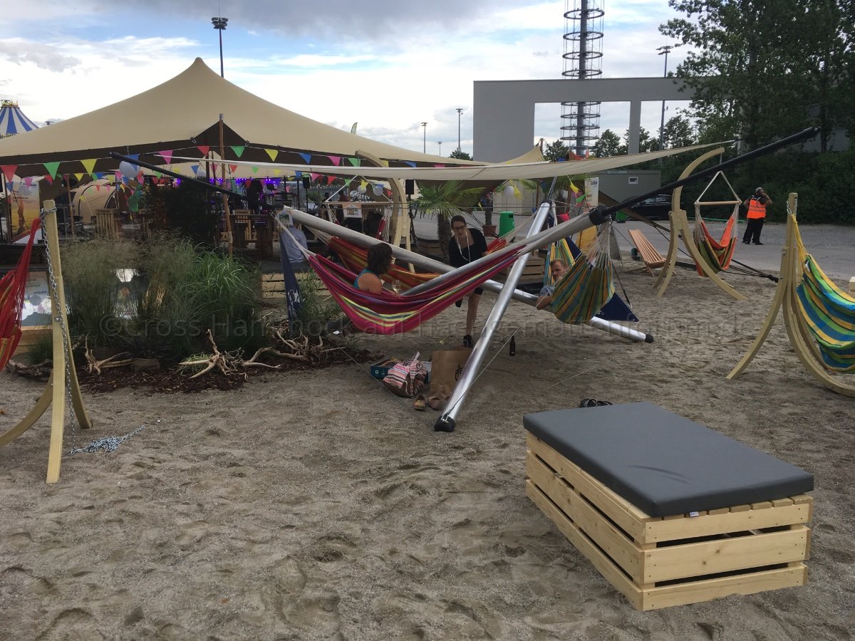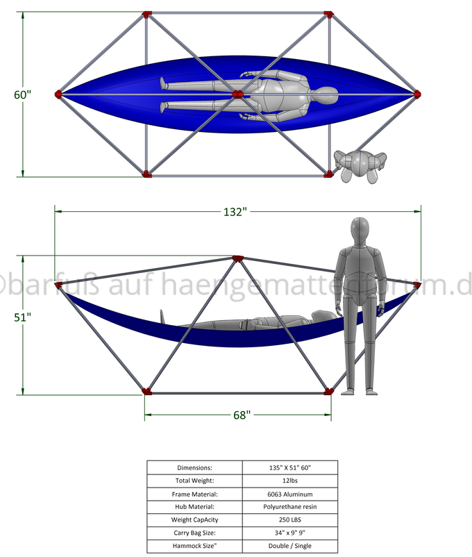 Es muss doch möglich sein, damit ein Gestell für viele Hängematten zu bauen. Wie einen EdgeDome. Die Frage ist, wie lang dürfen die Holzstangen sein? Wie dick müssen sie sein? Und wie groß und schwer wäre ein Gestell für 3-4 Hängematten?