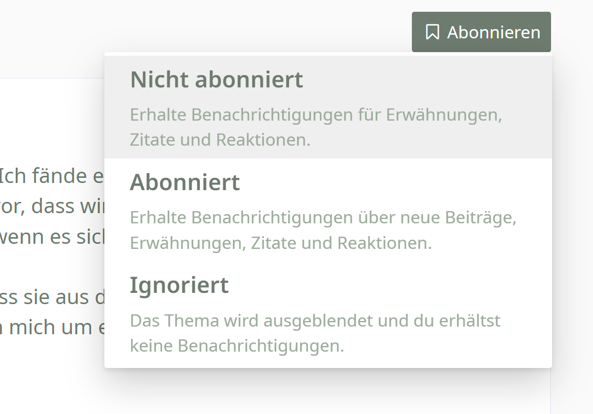 Gefunden. Man muss auf "Abonniert" DRAUFKLICKEN, dann öffnet sich das Menü. Herzlichen Glückwunsch liebe Entwickler, gibt es noch Easter Eggs (war ja früher mal modern)? Da musste erstmal drauf kommen....