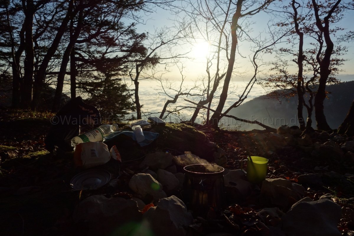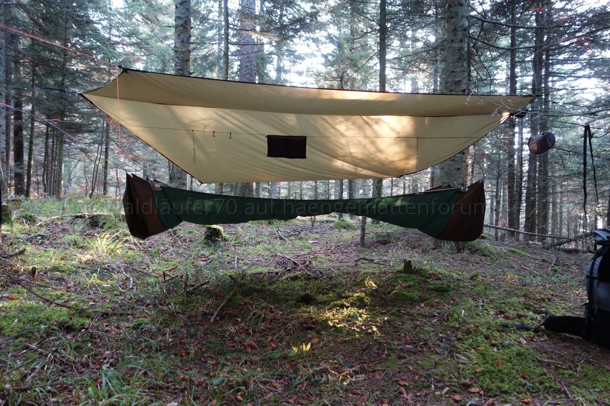 Wie schon im Herbst 2017 und 2018 habe ich wieder die gewohnte Strecke der Krete hoch über dem Val de Travers entlang ausgewählt, da man dort ziemlich alleine unterwegs ist. Zudem gibt es dort unzählige schöne Übernachtungsplätze mit kleinen Feuerstellen und schöner Aussicht. Im Gegensatz zum Herbst 2017 hatte ich dieses Mal meine Brücken-Hängematte 2.0 dabei, die ich erneut testen wollte.