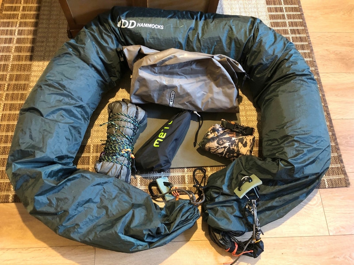 gerade auch mit der Mesh Hülle...........denn so kann man unterweg bei Pausen oder später im Lager das ganze Setup nochmal unkompliziert durchlüften lassen. Das geht mit meiner DD Tarp Hülle (wasserdicht beschichtet) schlecht.