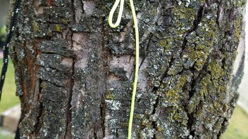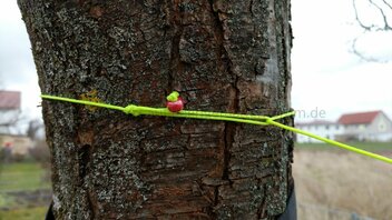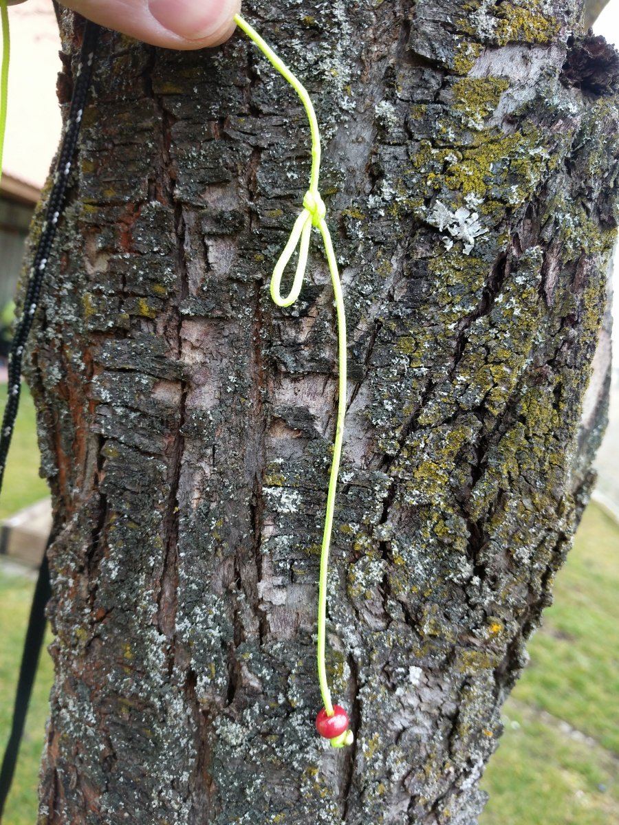 Eine Glasperle aus'm Bastelladen auffädeln, Achterknoten ganz an's Ende der Leine, dann in etwa 10 cm Abstand vom Ende eine Schlaufe mittels Schmetterlingsknoten machen - fertig. Angewandt wird das Ganze folgendermaßen: