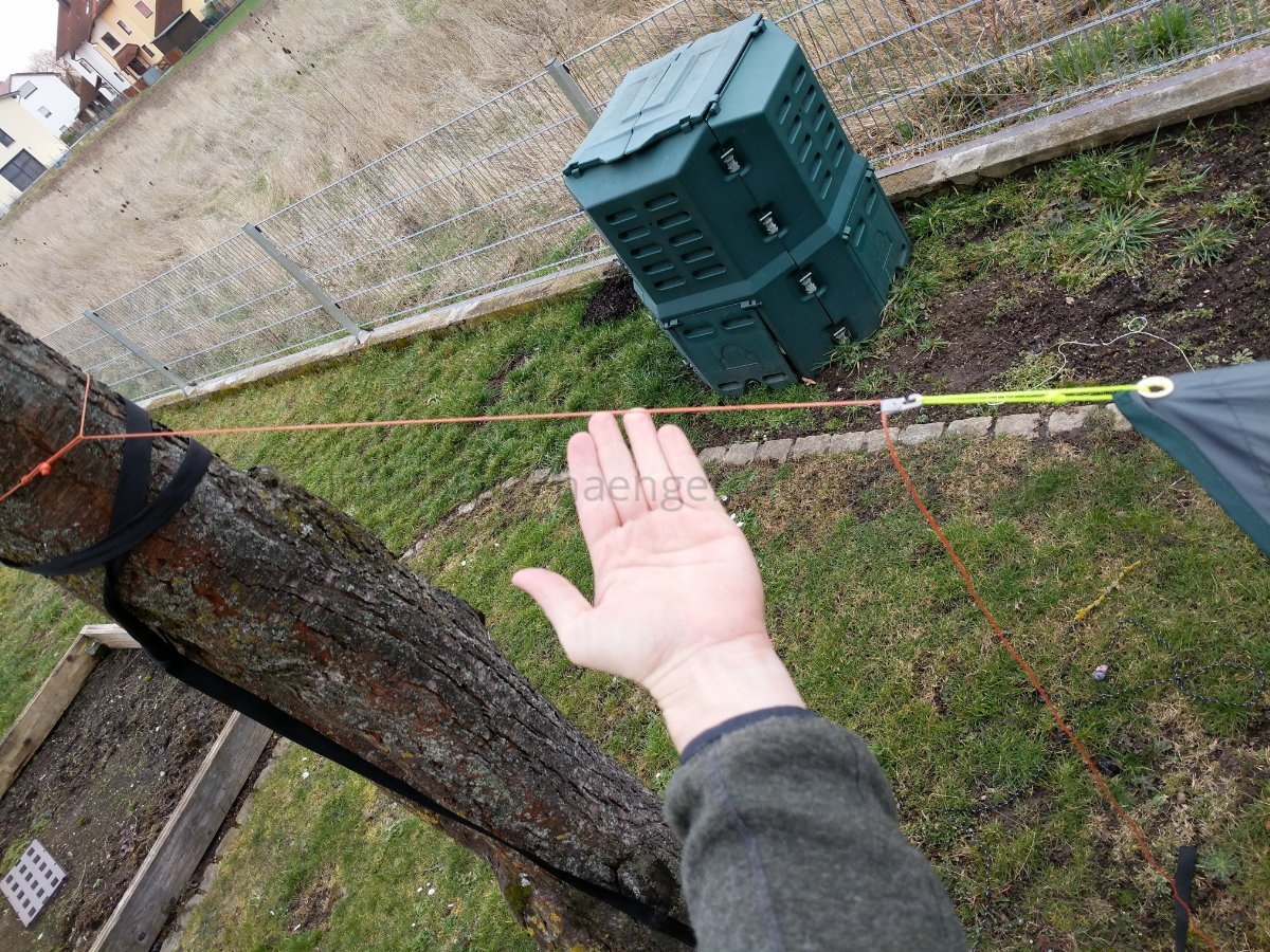 ich hab seit einiger Zeit eine Konstruktion am Ende meienr Tarp-Ridgeline, die wunderbar einfach herzustellen ist und sehr gut funktioniert.