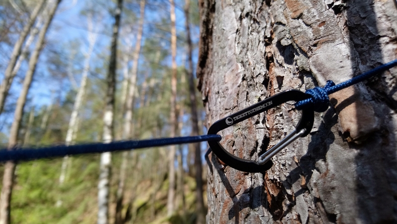 Die Ridgeline welche um den Baum gelegt wird ist blau und mit einem TTTM Karabiner ausgestattet.
