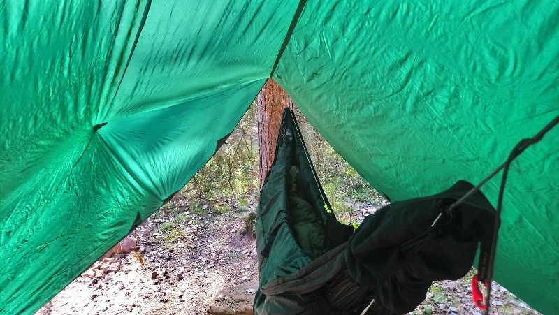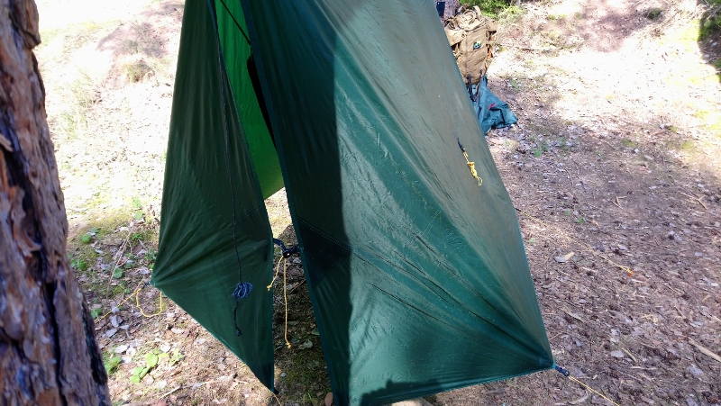 Dadurch verliert man natürlich an Stehhöhe unter dem Tarp.
