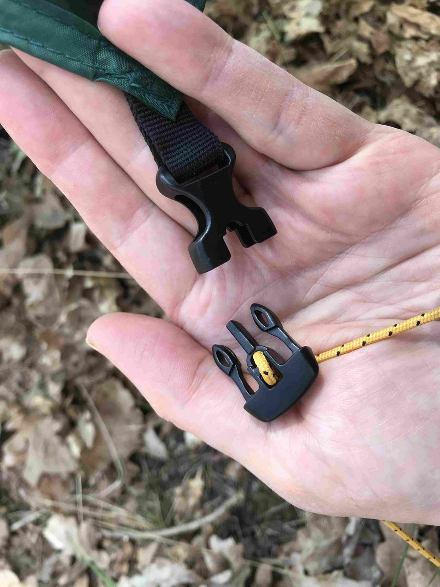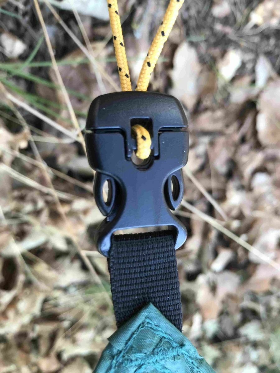 Hier ebenfalls eine Schnalle zum schnellen Abbau und stufenlosen Einstellen.