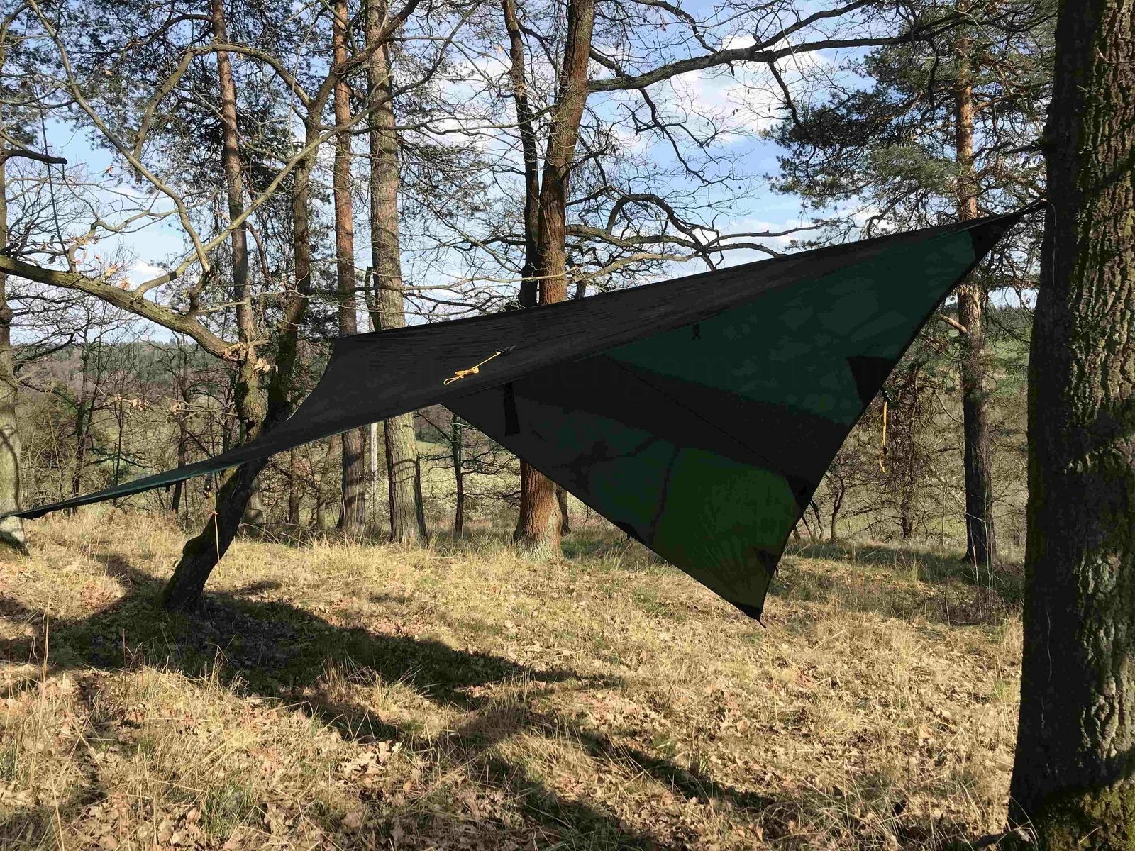 Man kann das Tarp noch etwas tiefer aufhängen um den Abstand zum Boden hin zu minimieren.