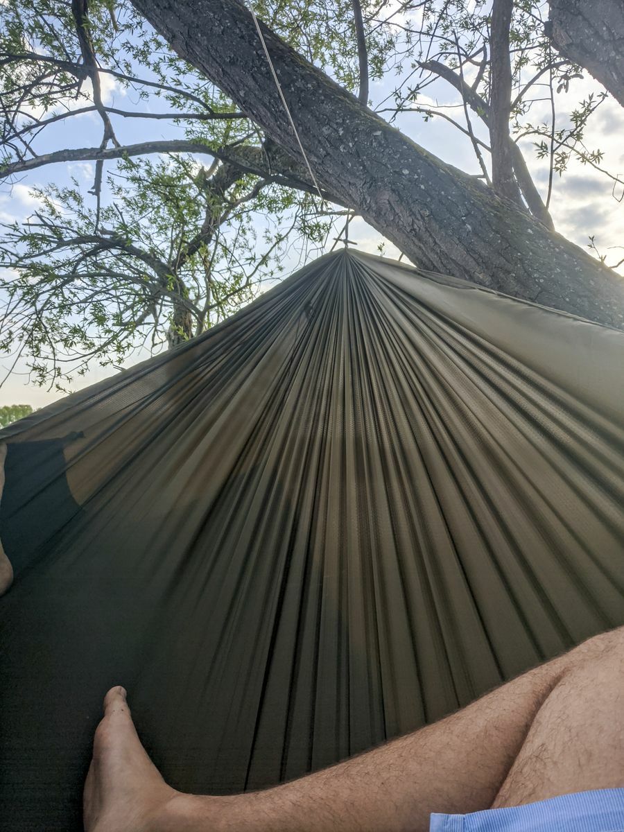 Ich habe jetzt 1 Woche lang in meiner Hexon 1.7 Hängematte geschlafen und finde den Stoff überraschend (für das Gewicht) wenig dehnbar. Ich habe sogar den Eindruck, dass er sich weniger dehnt als der normale 1.9oz Ripstop Nylon. Vermutlich fand ich die 90% Ridgeline deshalb nicht mehr angenehm: das Liegegefühl wurde mir zu hart. Ich habe die Ridgeline mittlerweile deutlich gekürzt. Insgesamt eine interessante Hängematte, weil sie sich so anders anfühlt als andere 70D SL Hängematten.