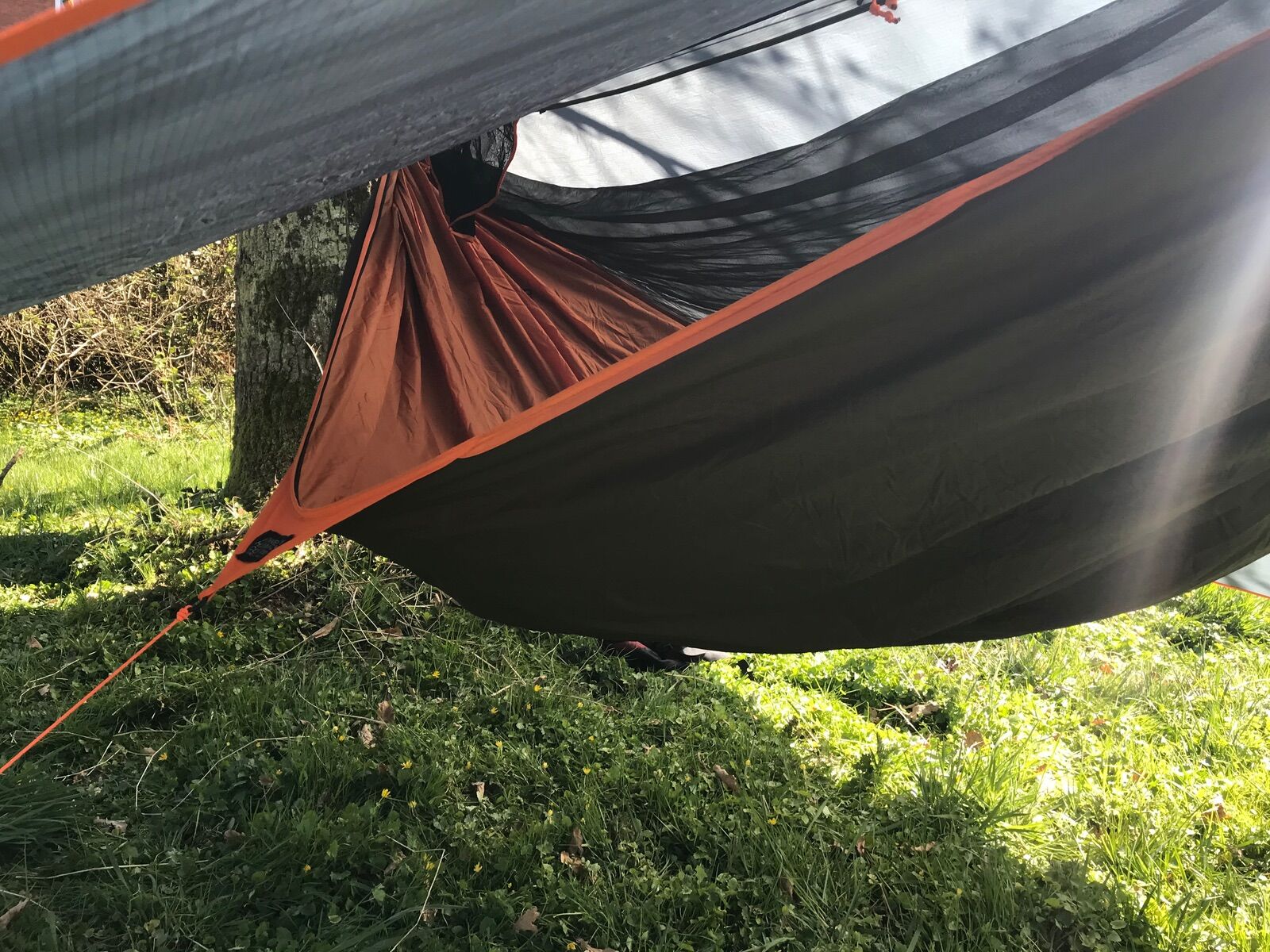 Hier die Aufhängung an meiner diy Hängematten Stange.