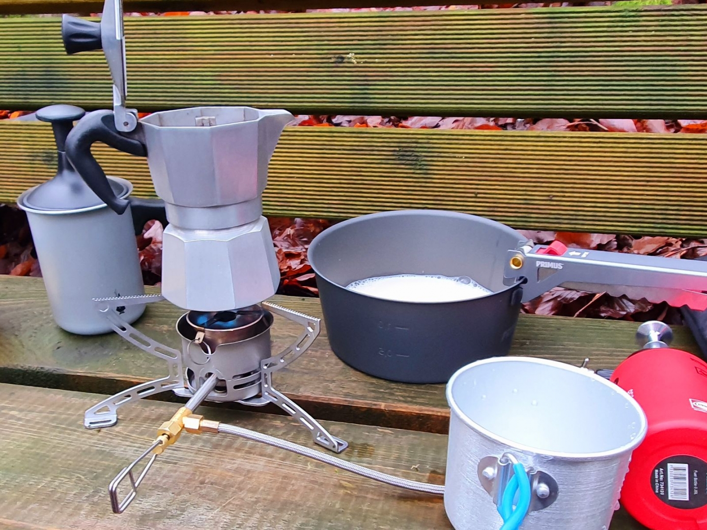 Ich nehme mir 100-200ml Coldbrew mit und gieße diesen im Verhaeltnis 1:2 oder 1:3 nur mit heißem Wasser auf ✌🏻 …..die 100-200g Mehrgewicht sind vertretbar, da kein weiteres Equipemt benoetigt wird ![]()
