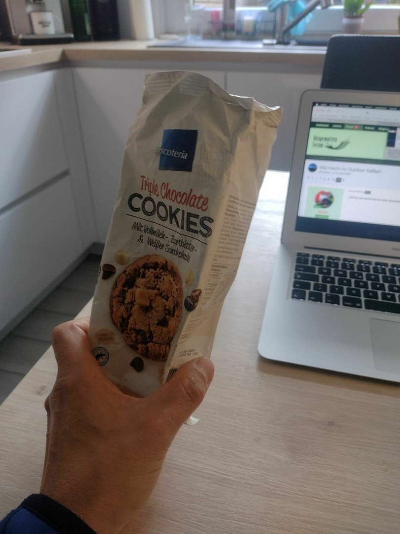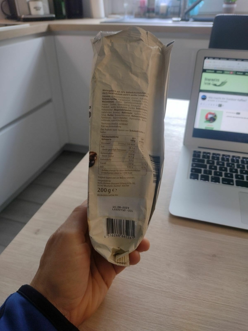 Und jetzt schau ich gerade so auf die Packung der Frühstücks-Kekse...