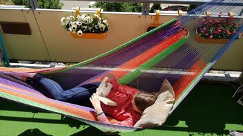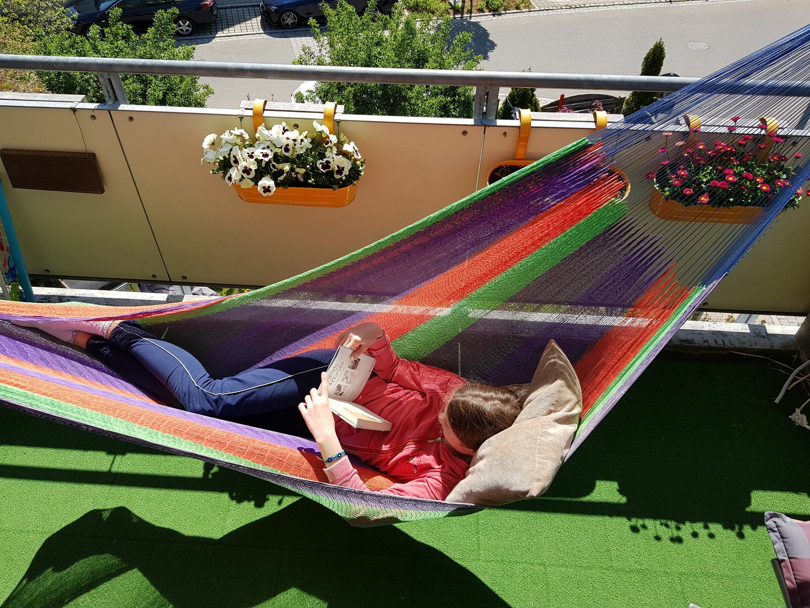 Jedenfalls bin ich vor kurzem umgezogen und konnte mich eine ganze Weile nicht entscheiden, was ich mit meinem Balkon anstellen möchte. Momentan verkommt er nur als Abstellraum. Dann ist mir irgendwann die Idee gekommen, dass es doch sicherlich ganz angenehm wäre dort eine Hängematte aufzuspannen. Einfach nur zum entspannten Herumliegen und um dort gelegentlich ein Buch zu lesen. Vermutlich würde ich die Hängematte dort die meiste Zeit aufgespannt lassen.