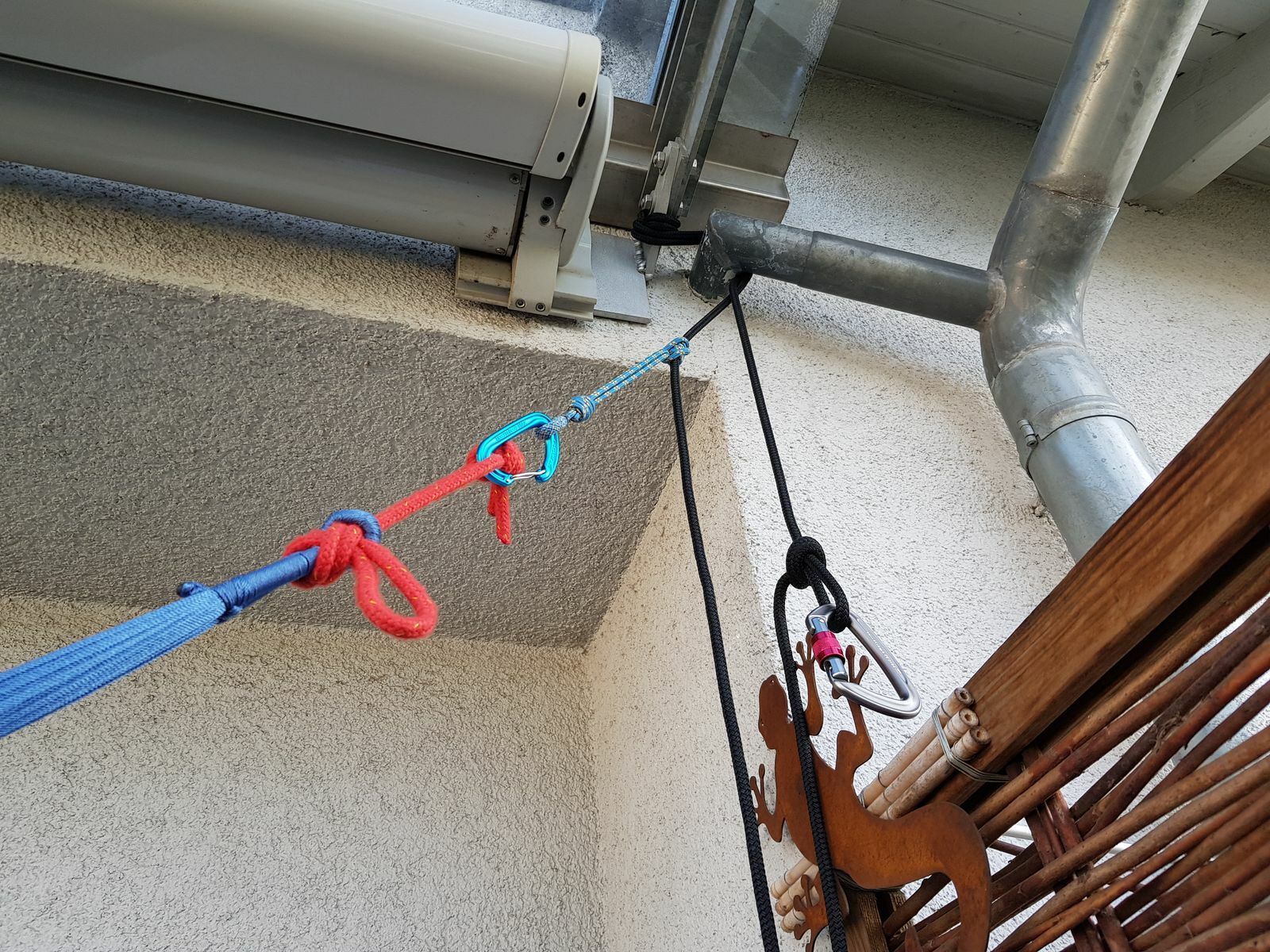 Es ist noch zu erwähnen, dass ich keinen normalen Balkon habe, sondern eher einen Art Wintergarten. Sprich rechts und links sind Wände und nach vorne ist eine Fensterfront. Es gibt keine offene Fläche, solange die Fenster geschlossen sind. Man muss sich also keine Sorgen um die Wasserempfindlichkeit der Hängematte machen. Ich habe zum besseren Verständnis ein Bild von meinem Balkon angehängt. Vom Vermieter bereits die Erlaubnis geben lassen in die Wände je einen Dübel anzubringen, um eine Hängematte aufzuhängen.