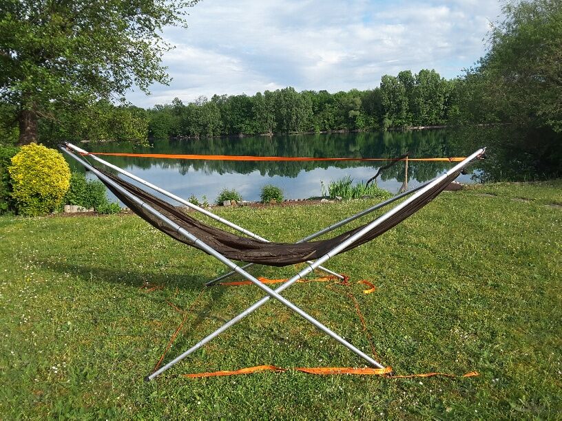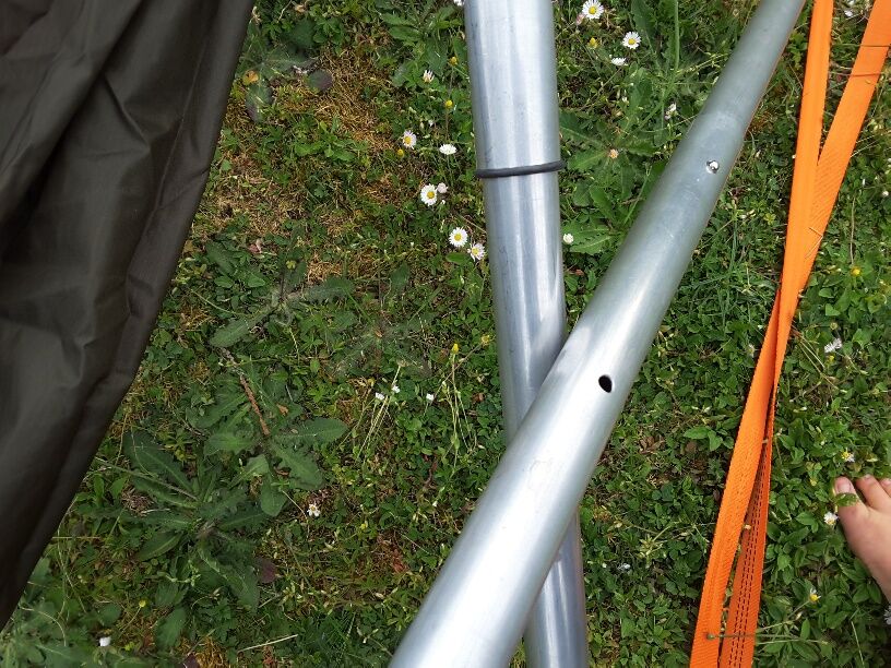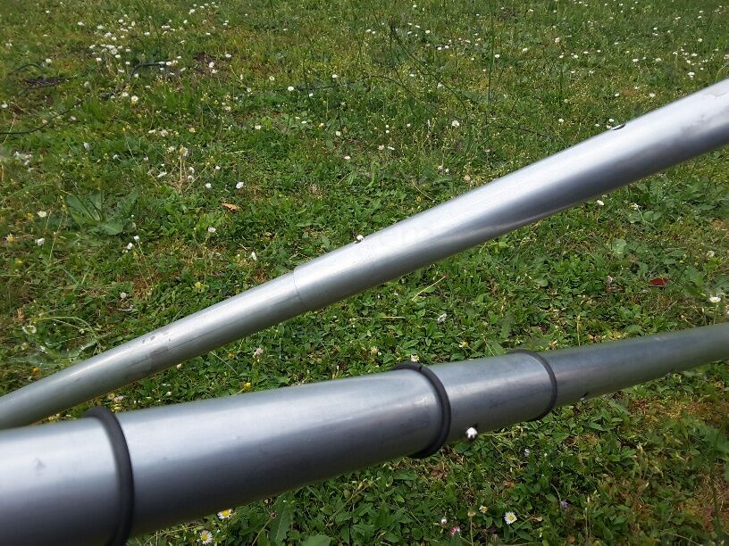 Jedes der 4 Rohre war in der Mitte nochmals unterteilt und mit Stahlkern-Verbindern verbunden. Zum Testen habe ich die eingehängte Hängematte mit ca. 150kg „beladen“. Hat alles super gehalten. Im Alltag lagen aber meist nur ca. 75 kg drin😊