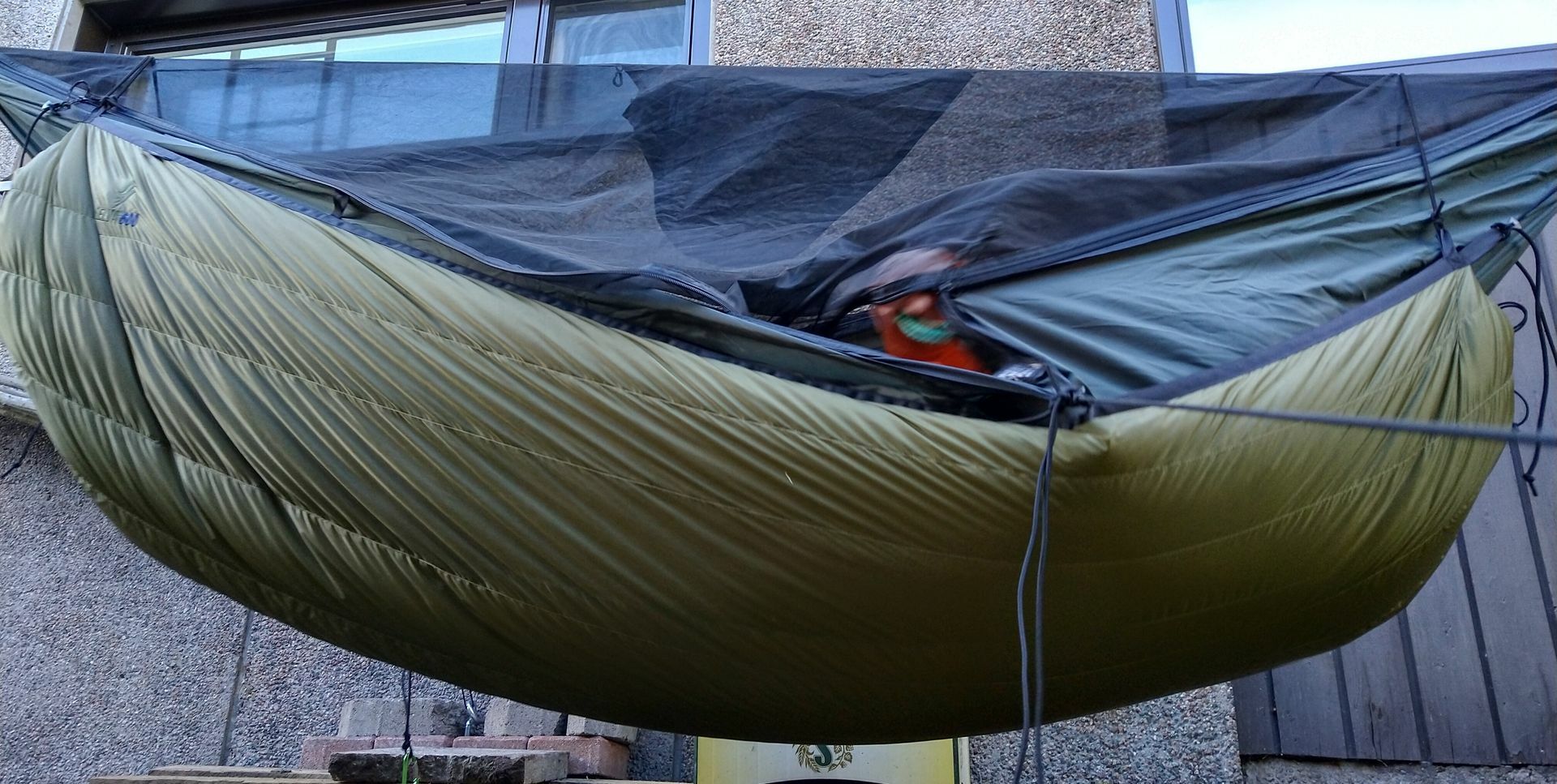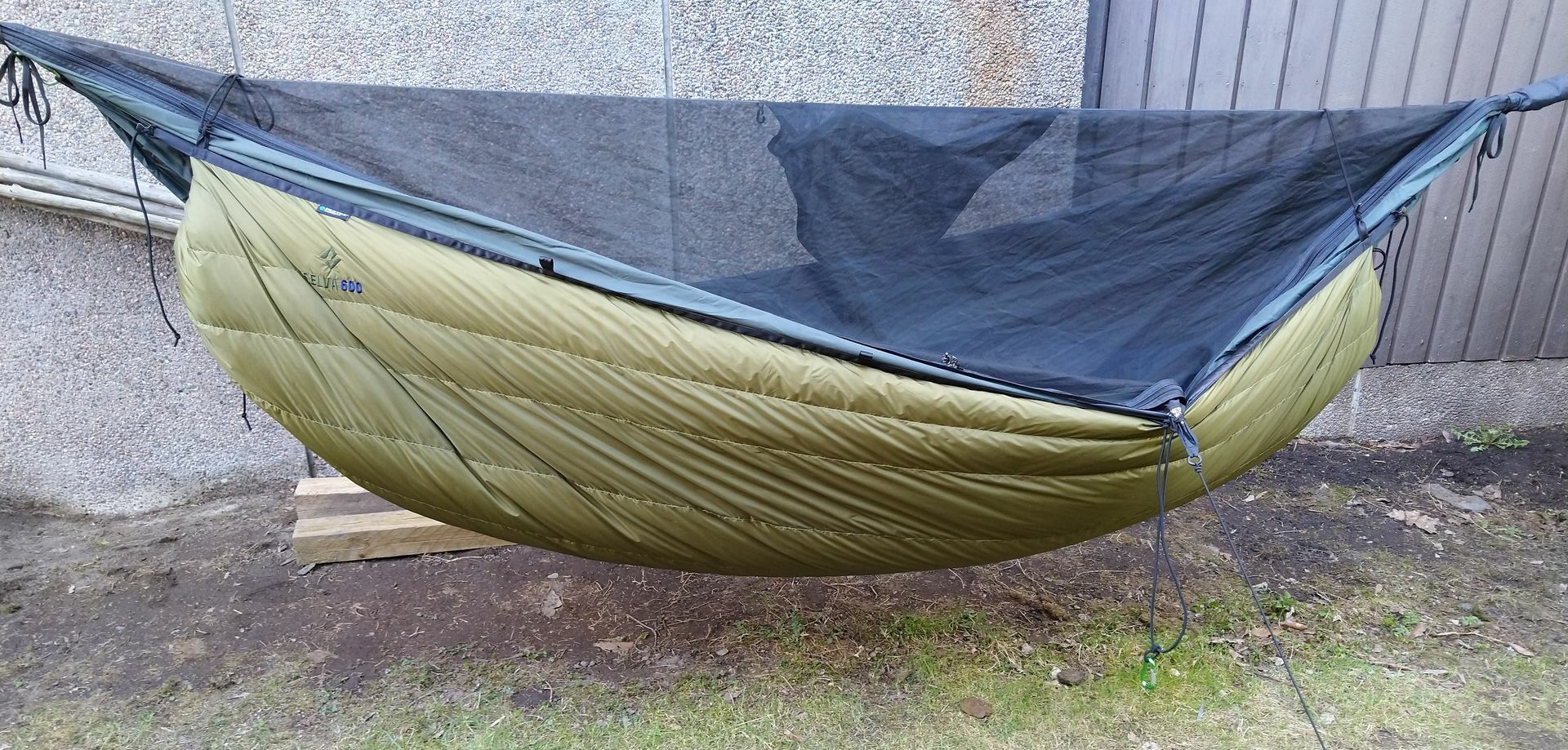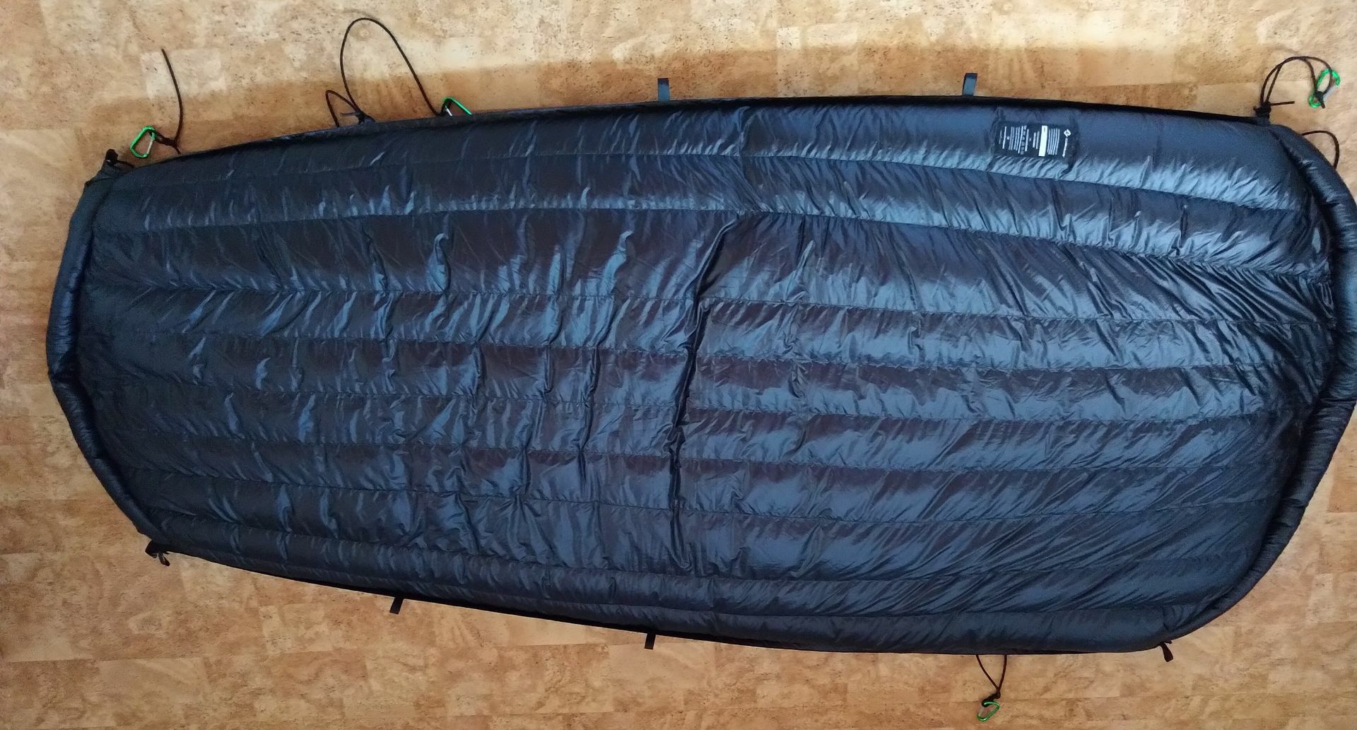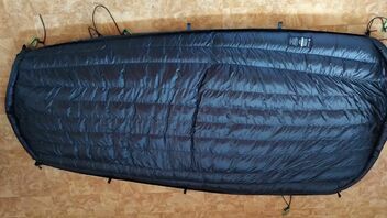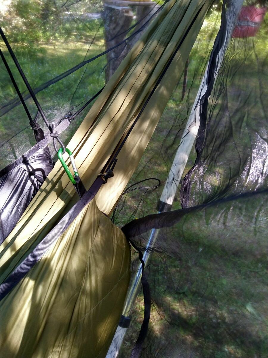 Ich meine, mit dem Selva600 UQ geht asymmetrisch dank guter Passform (Anschmiegsamkeit), ausreichend Länge und Breite. Und zwar leichter als mit dem kurzen und schmalen DD Underblanket. Aber eben auch bei einer 11ft / 335cm GE HM und definitiv gut genug für meine Ansprüche diagonal (asymmetrisch) zu liegen. Das funktioniert denke ich am besten, wenn die Längsverspannung wie oben beschrieben FREILAUFEND im Endkarabiner beweglich bleibt (nicht wie bei DD mit einzelnen Längs-Kordeln).