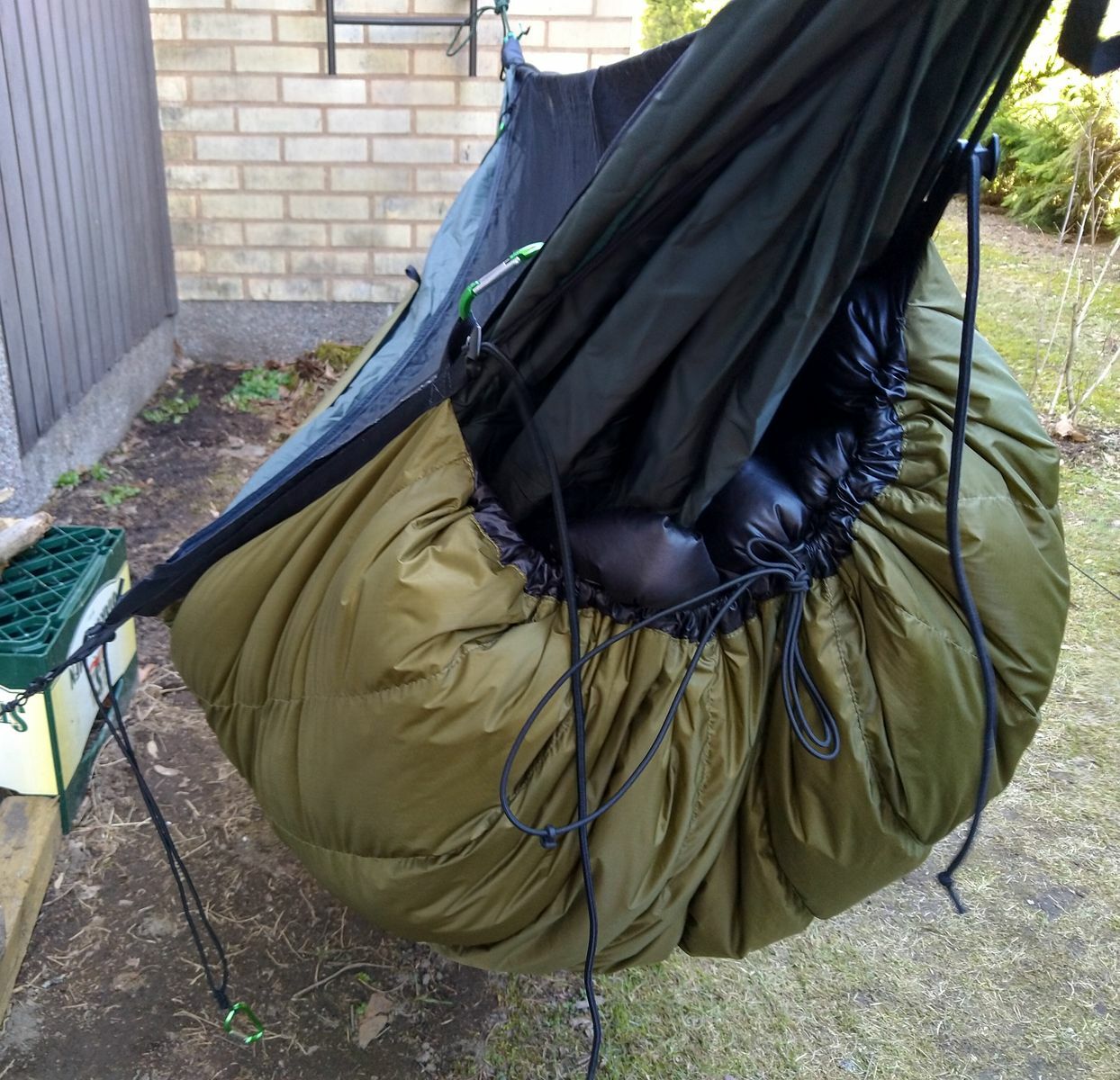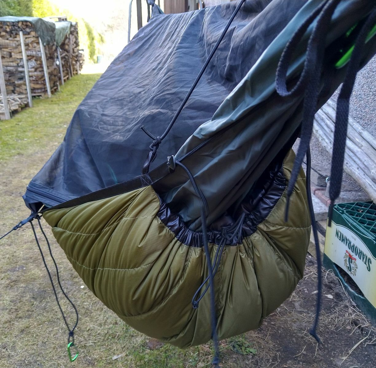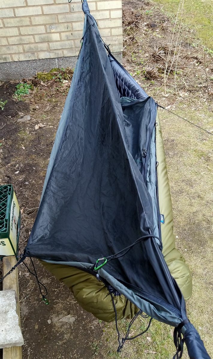 Die prinzipielle Frage war für mich (v.a. nach paar Tips von TreeGirl), wie hänge ich den nun mal existierenden Cumulus-UQ bestmöglich asymmetrisch auf, gelingt das ohne Verrutschen, ohne unberechenbare Wärmeverluste, und natürlich möglichst einfach, praktikabel und bequem.