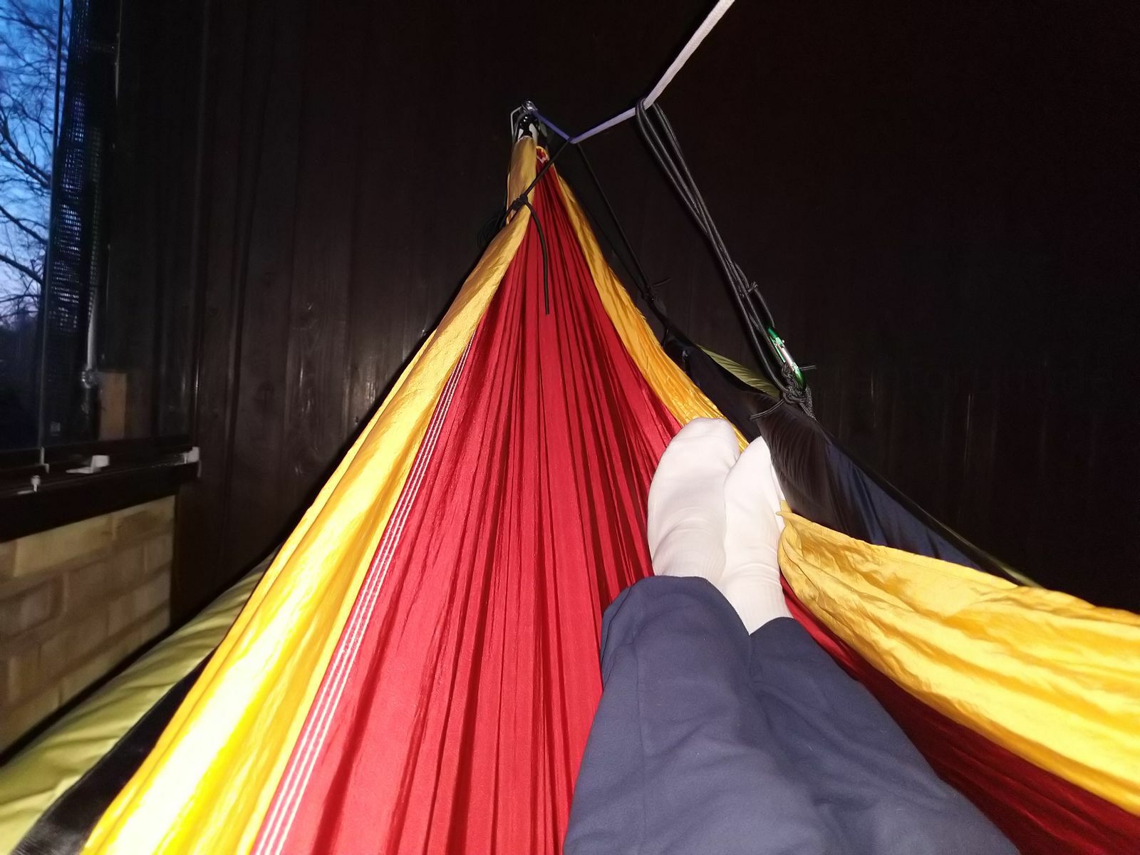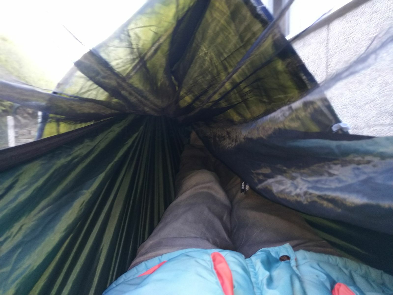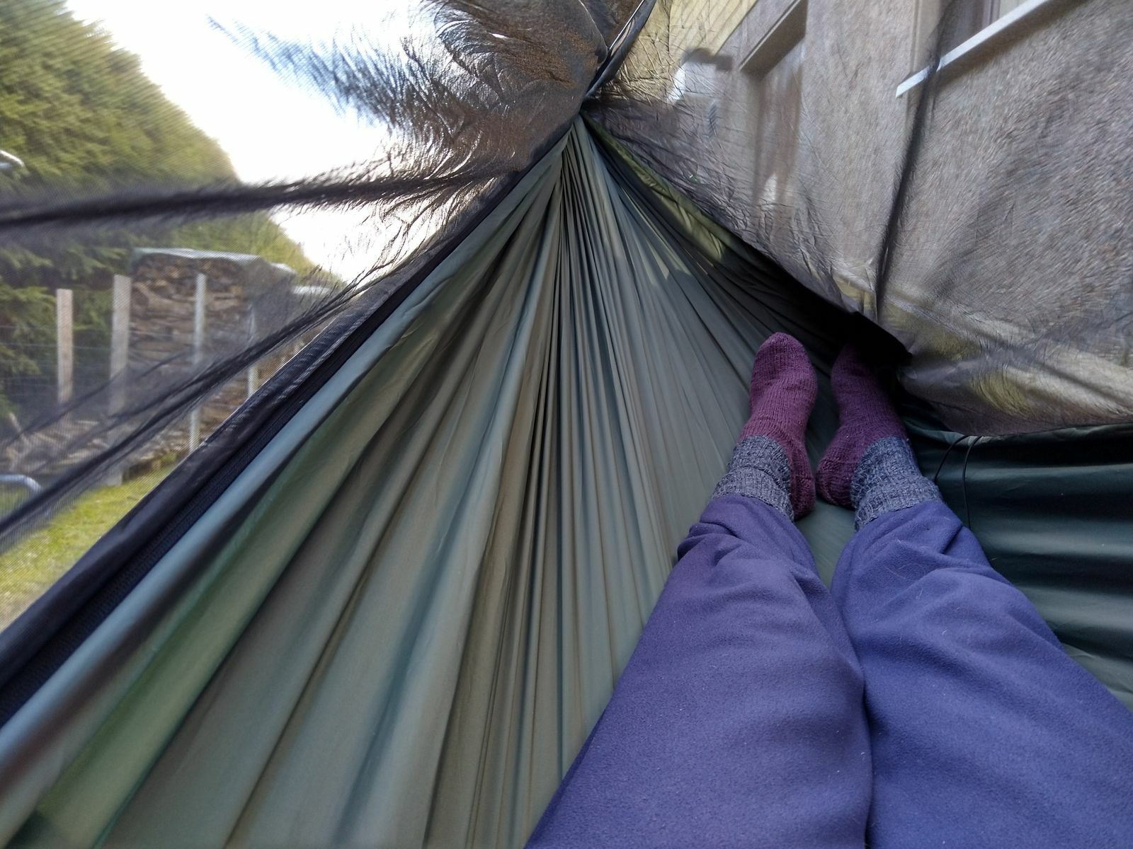 Ich glaube, dies war meine bisher beste Nacht in einer Hängematte. Es war auch knapp an der Null-Grad-Marke vorbei, also schon kalt auf der Terasse, aber von unten her bliebs immer gut mollig.