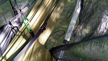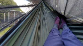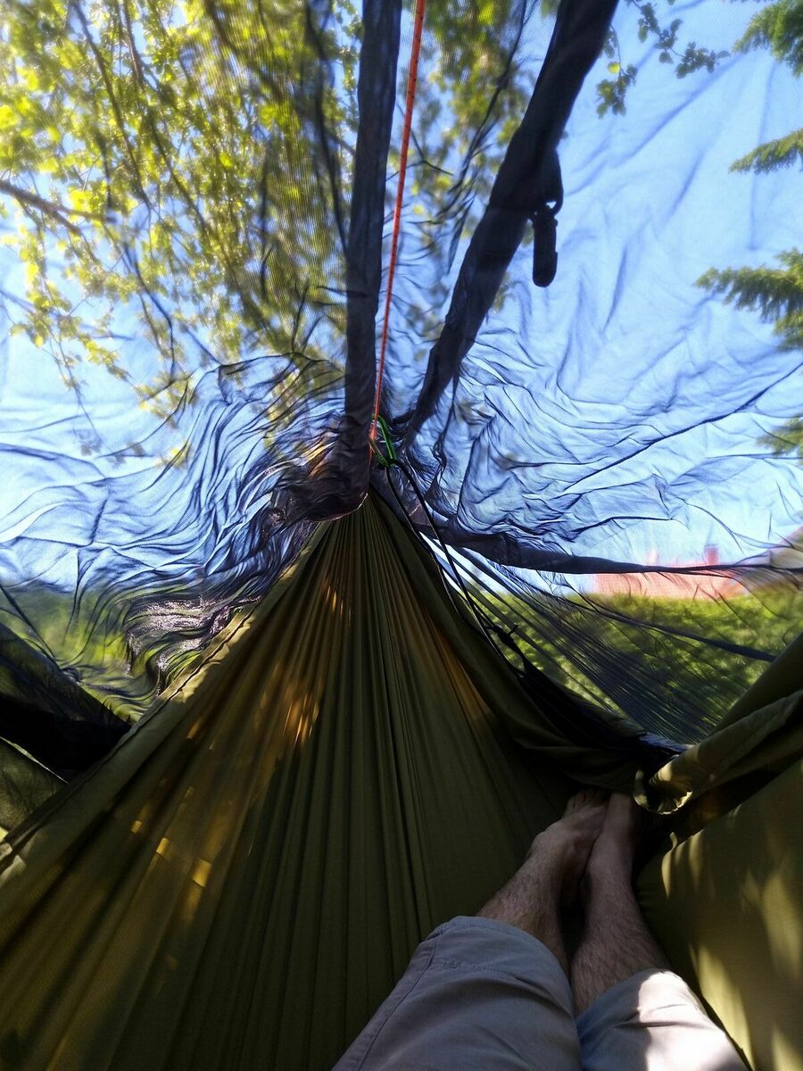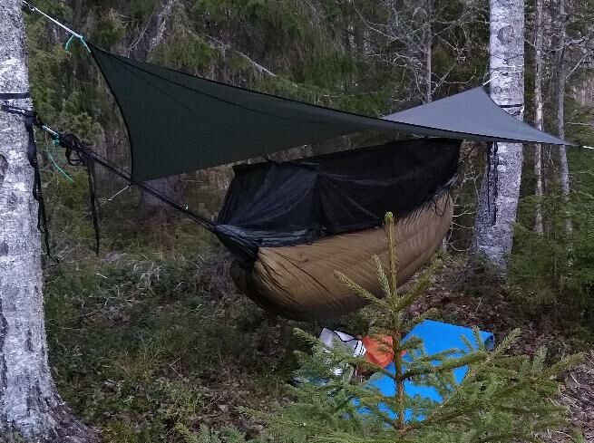 Insgesamt fand ich den Liegekomfort in der DD allerdings nicht immer unangenehmer als bei der vorherigen Hennessy-HM, und mit Not-Isomatte (Zweite Person?) ist die DD je nach Abspannwinkel sogar bequemer - ich habe gute Nächte darin verbracht. Also immer noch nützlich. Aber eben auch schlechte...