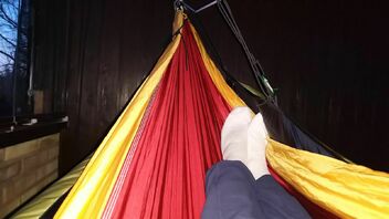 Warum diese und keine "lange" Hängematte? Nun ja: Man kann was man hat.