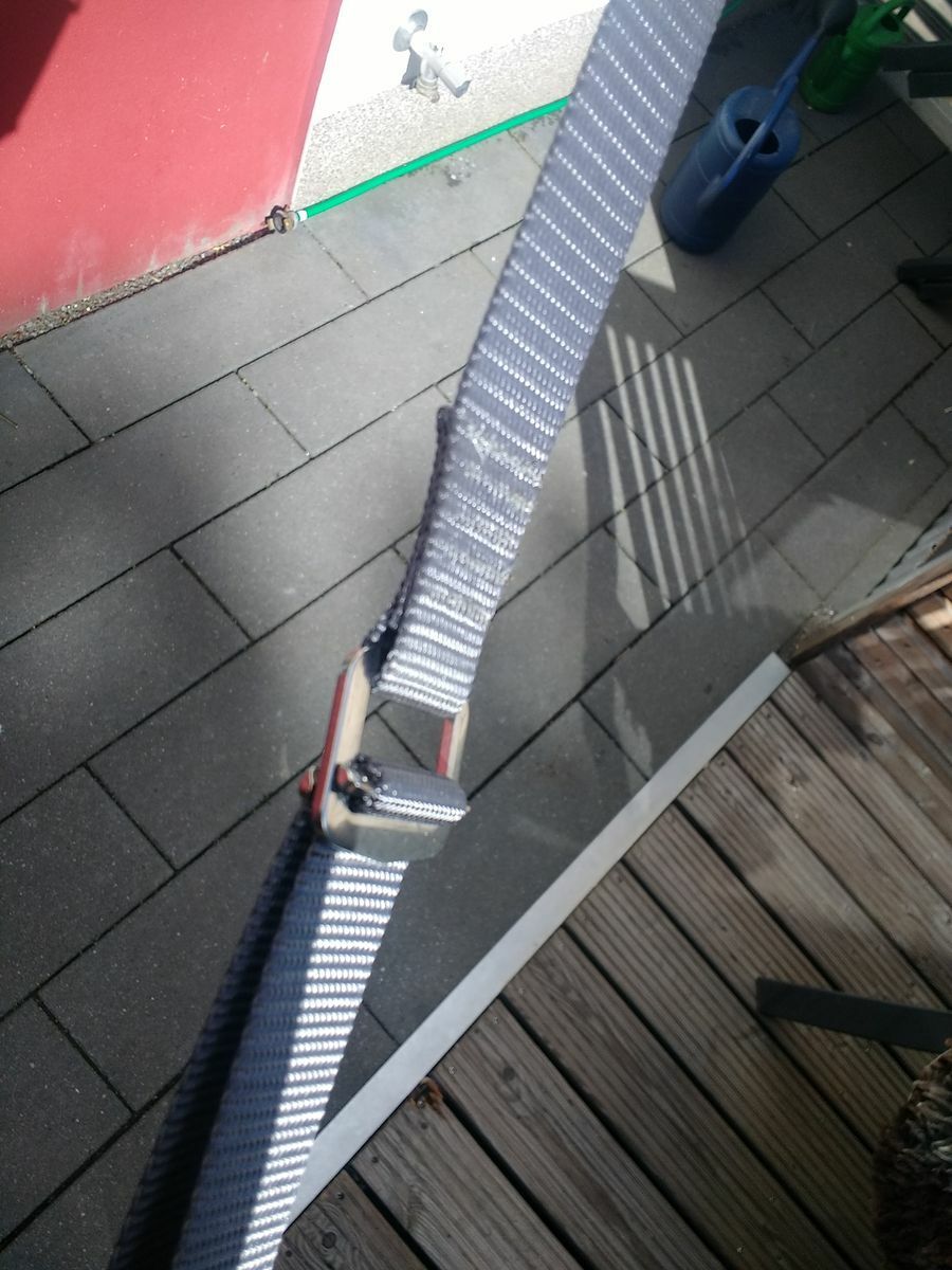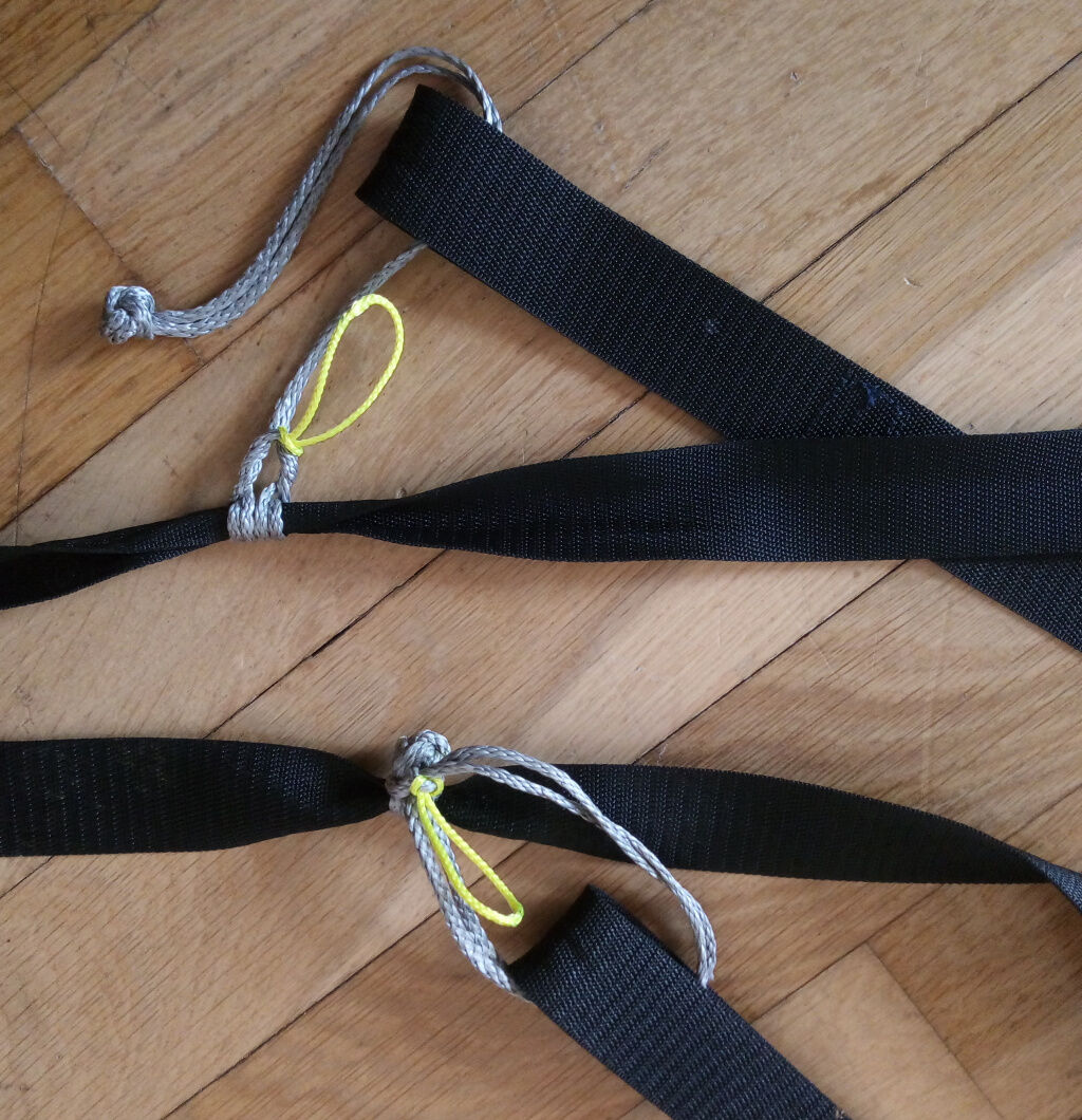 Sonstiges: Alutoggle wird mit dünner Schnur am Ende des Baumgurtes gesichert.