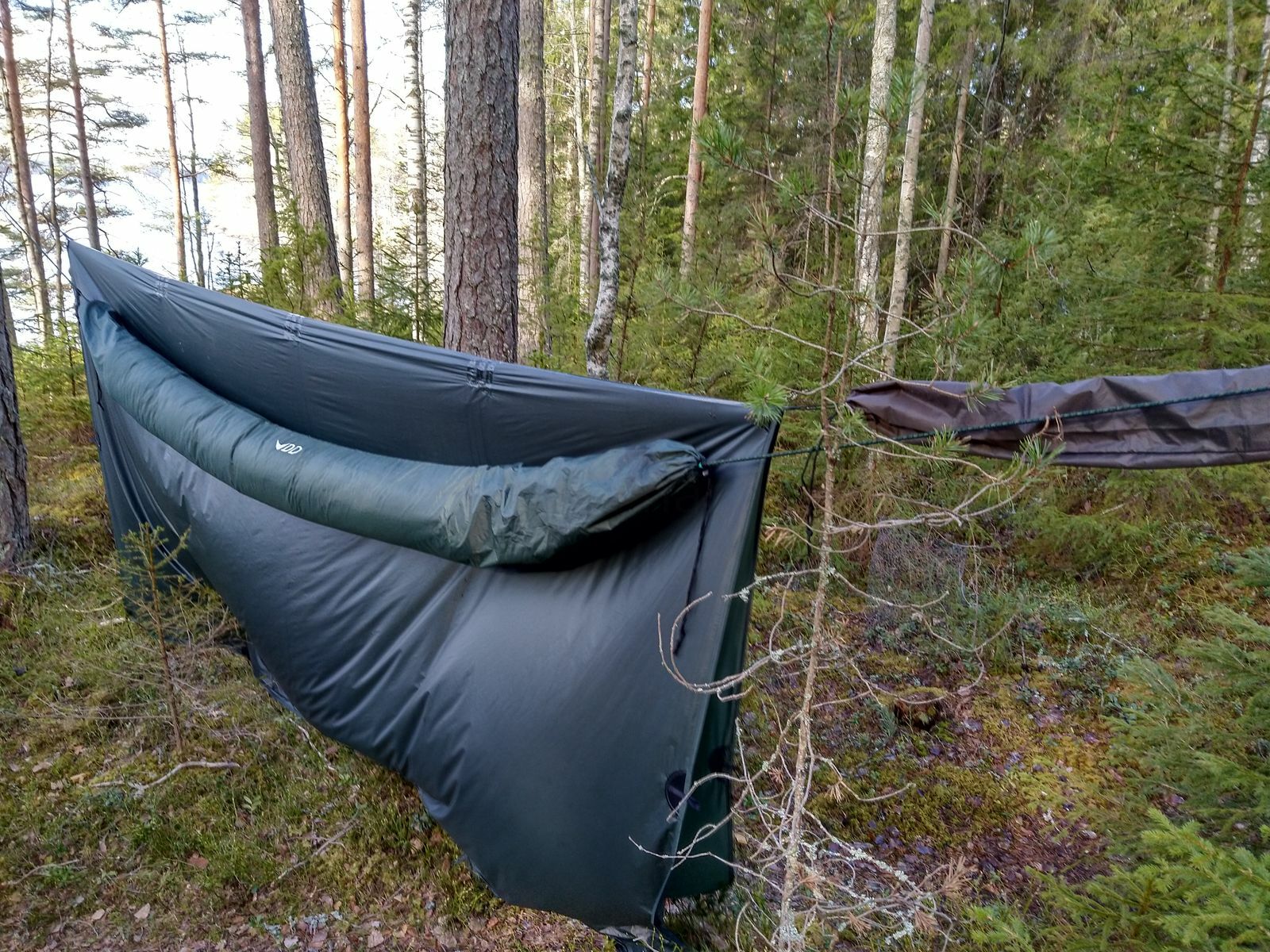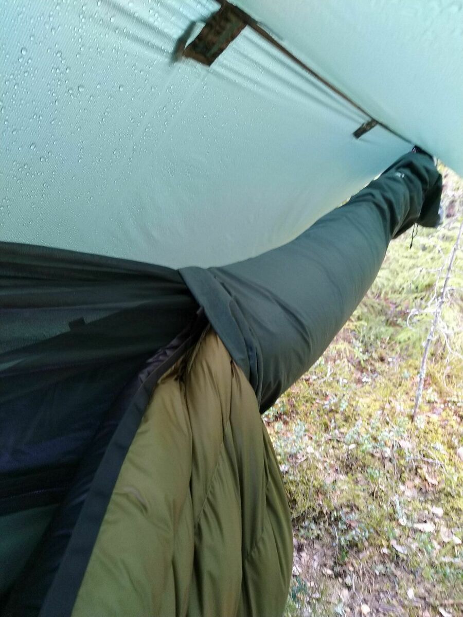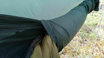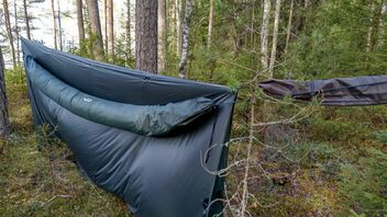 Durch die doppelten Lagen kann man eine zusätzliche Isolierung zwischen die Lagen schieben, wie z.B. eine Mylarfolie und meine Winterkleidung, um den Bereich bis -10°C zu erweitern und so die Notwendigkeit mehrerer Unterbetten zu vermeiden (obwohl ich sie ohnehin für andere Hängematten besitze).