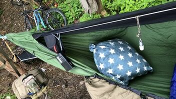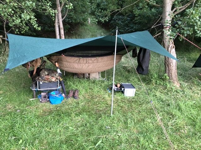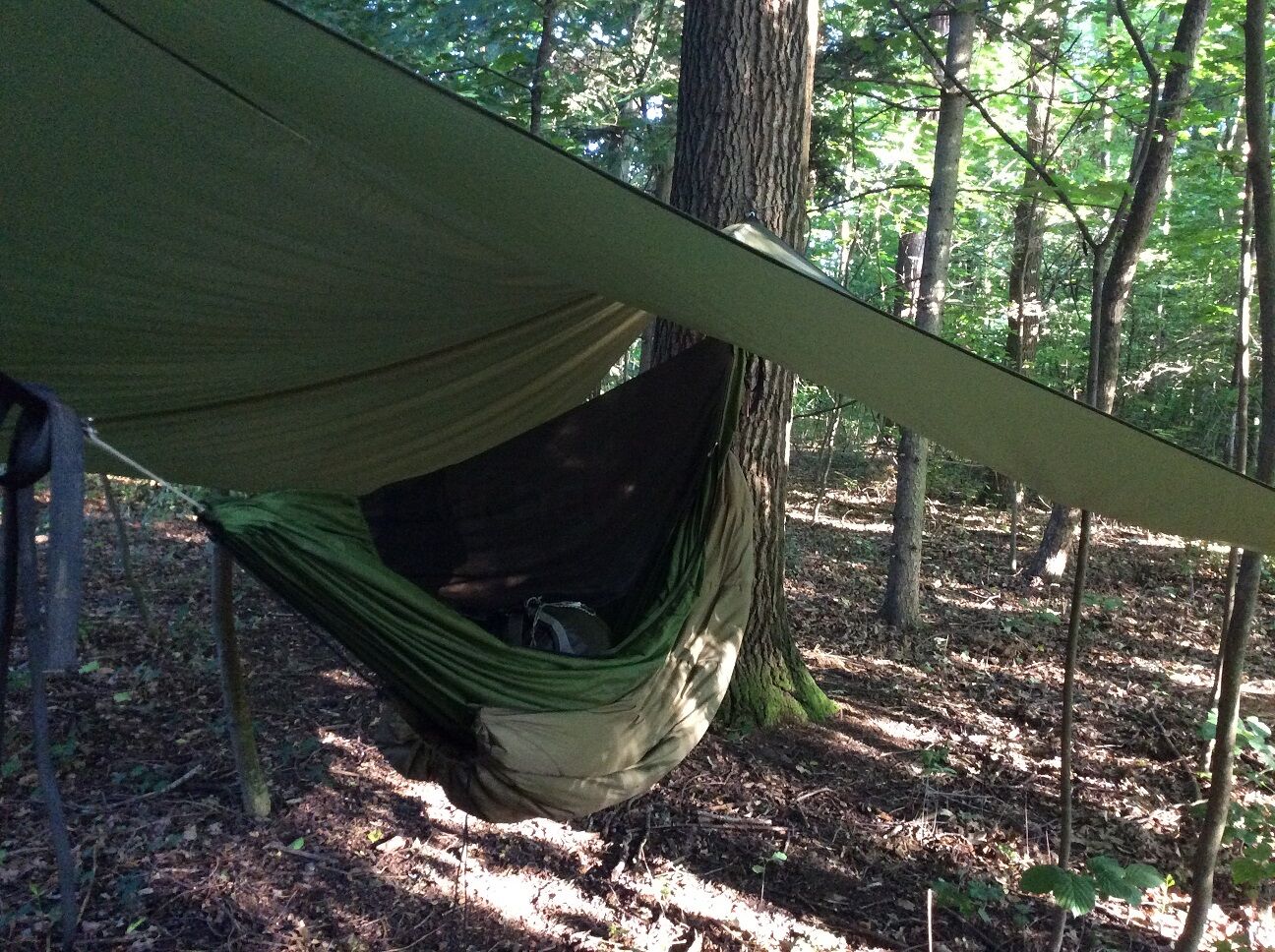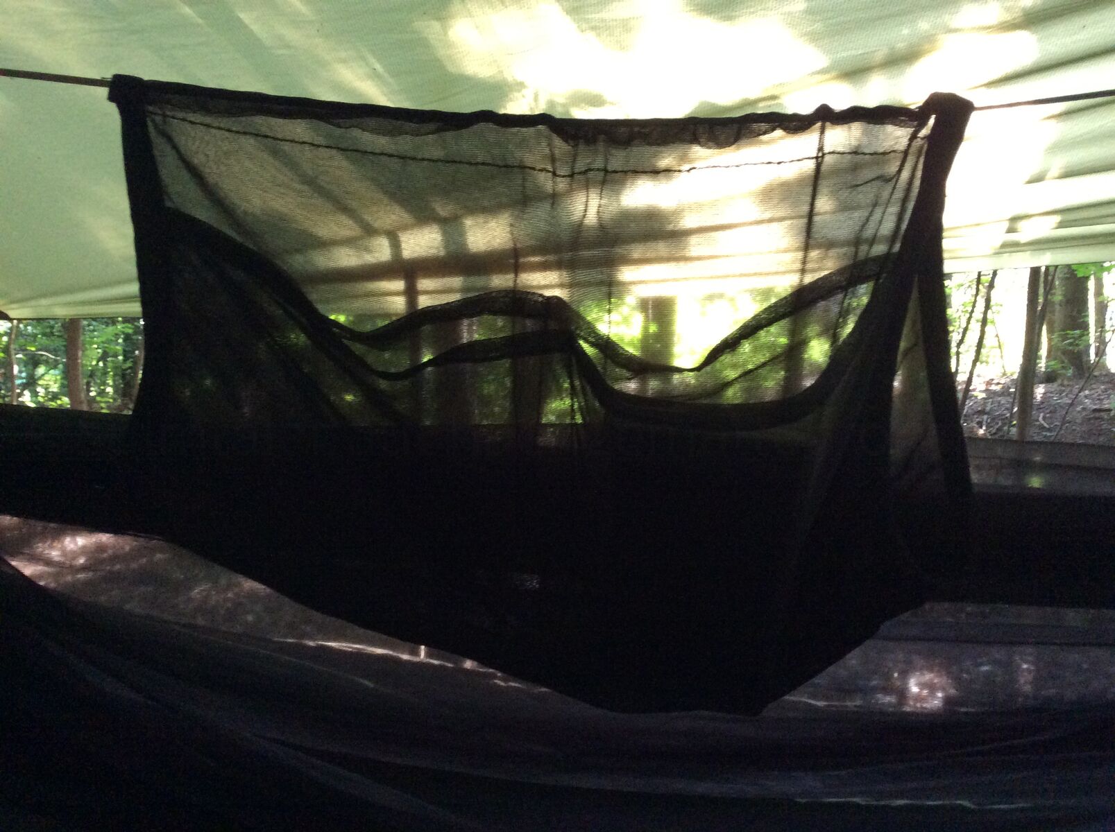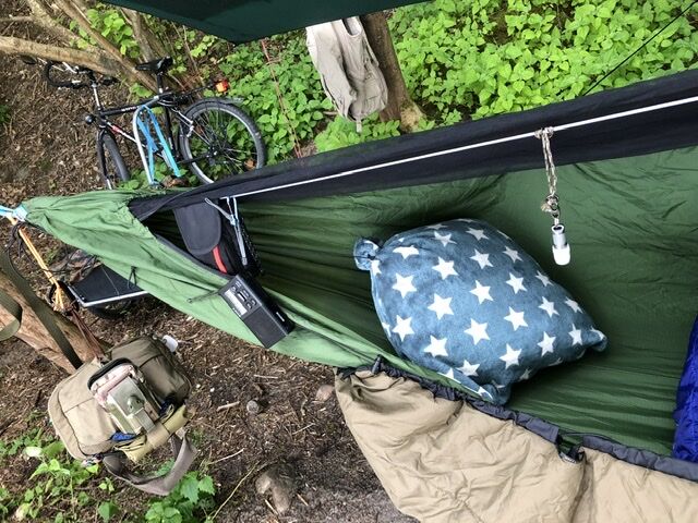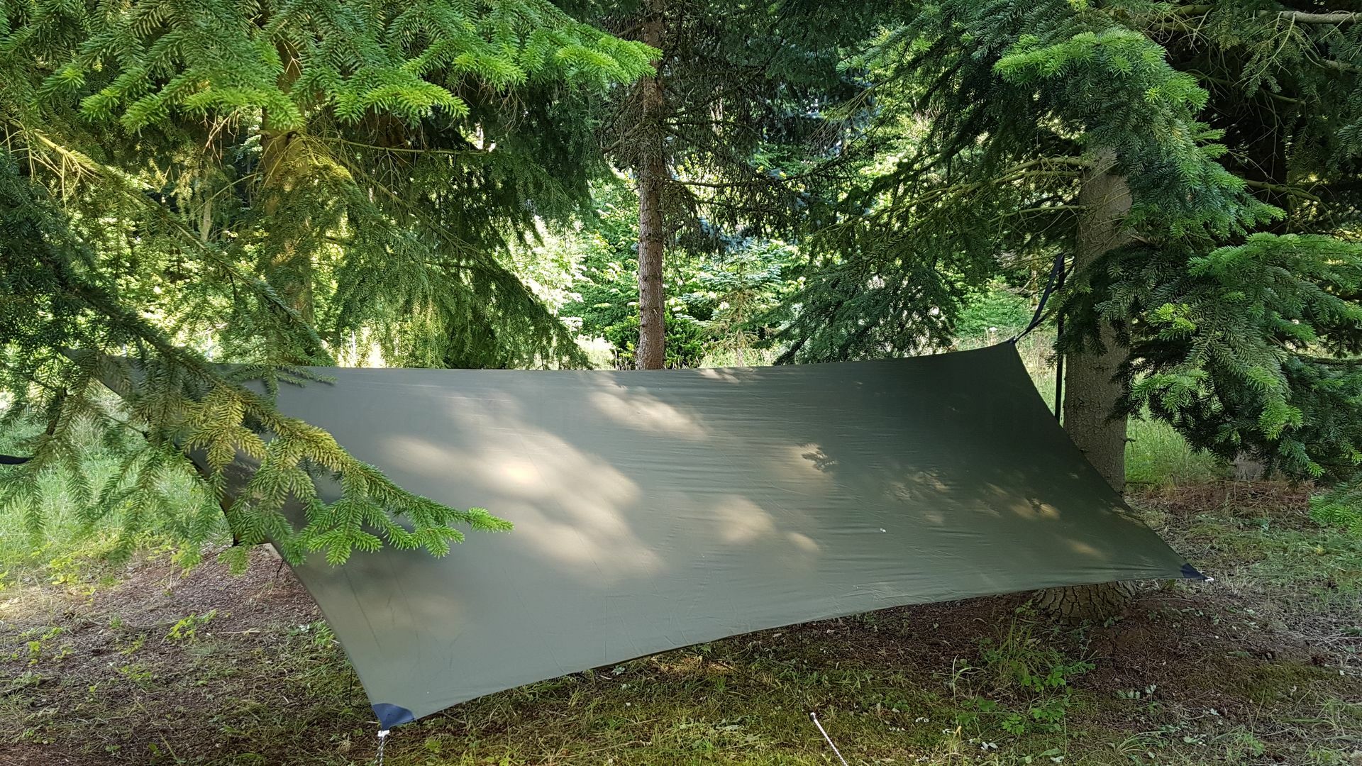 Das Underquilt scheint einfach zu breit für diese Hängematte zu sein. Wenn die Seiten des Underquilts an die Seitenabspannung der Matte stoßen ist unter der Matte noch ein Sack vom Underquilt der einfach nur rum schlabbert. Bei der Wärme grade kein Problem aber wenn es kälter wird wärmt das bestimmt nicht wirklich. Mit der Abspannung hab ich dann auch nicht weiter rum gespielt, da ist bestimmt noch Optimierungspotential. Insgesamt würde ich aber Sagen das es nicht das richtige Underquilt für diese Matte ist.