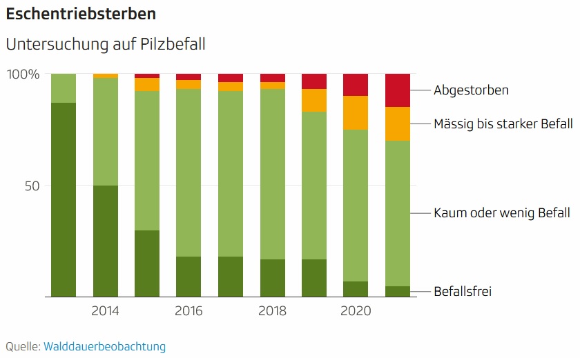 Hier eine Grafik zum so genannten "Eschentriebsterben" in der Schweiz: