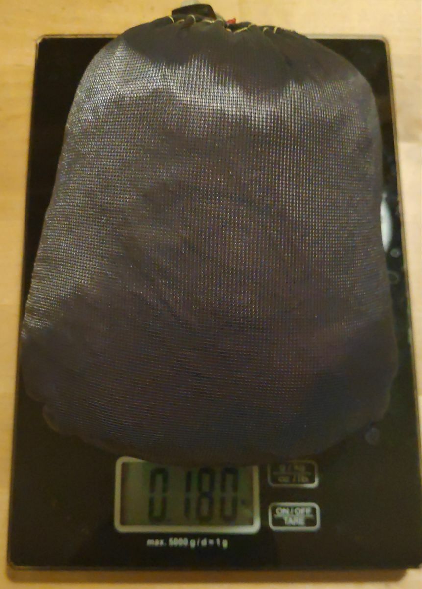 'Maximal Leicht' wäre etwa 60-70g (keine Lust es auszurechnen). Dann ist das Teil aus Cuben Fiber (25g/m^2) und kostet so um die 100 Euros für das Material...