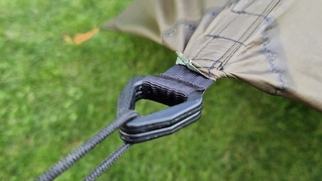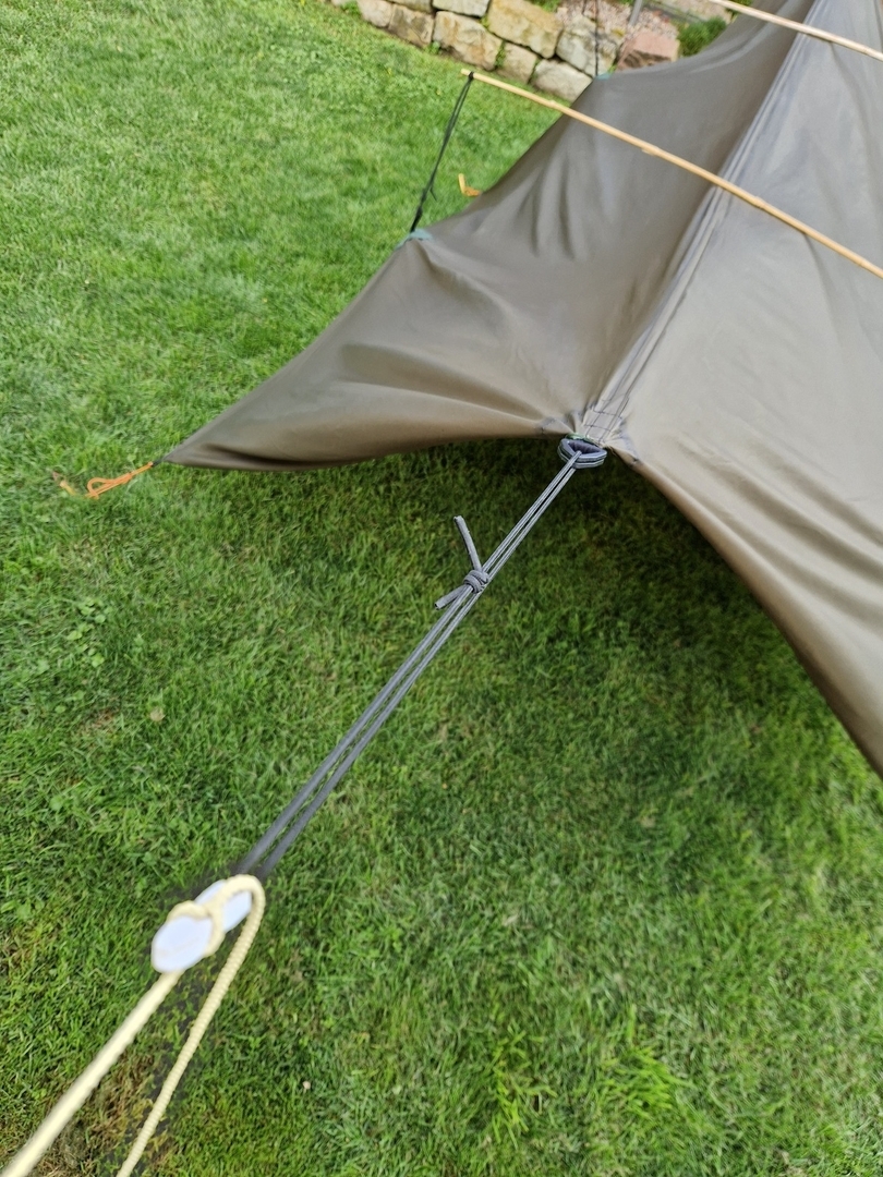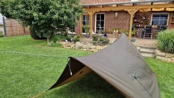 Ich habe bis lang für mein Tarp immer eine extra Firstschnur angebracht. Nun ist es mir allerdings schon mehrmals passiert, das die Baumgurte der HM höher hingen als die Firstschnur. Wenn dann die HM etwas schaukelt reiben die Whoopies/Baumgurte an der Schnur vom Tarp. Das ist nicht weiter schlimm, jedoch stört es mich beim Mittagsschlaf![]()