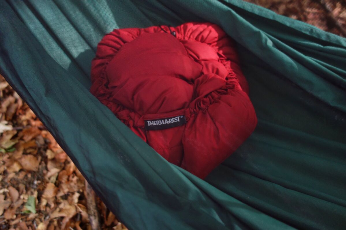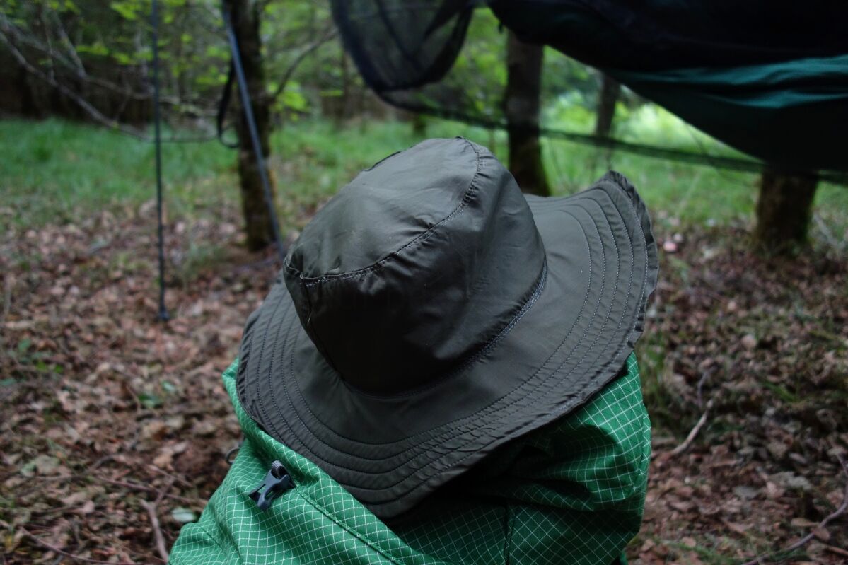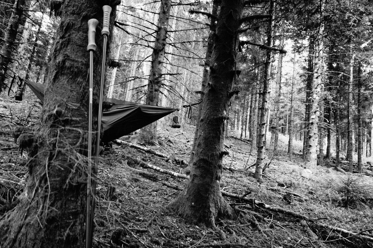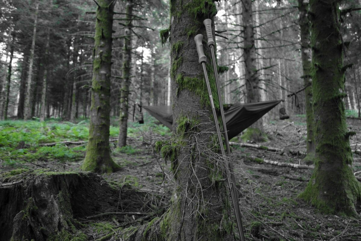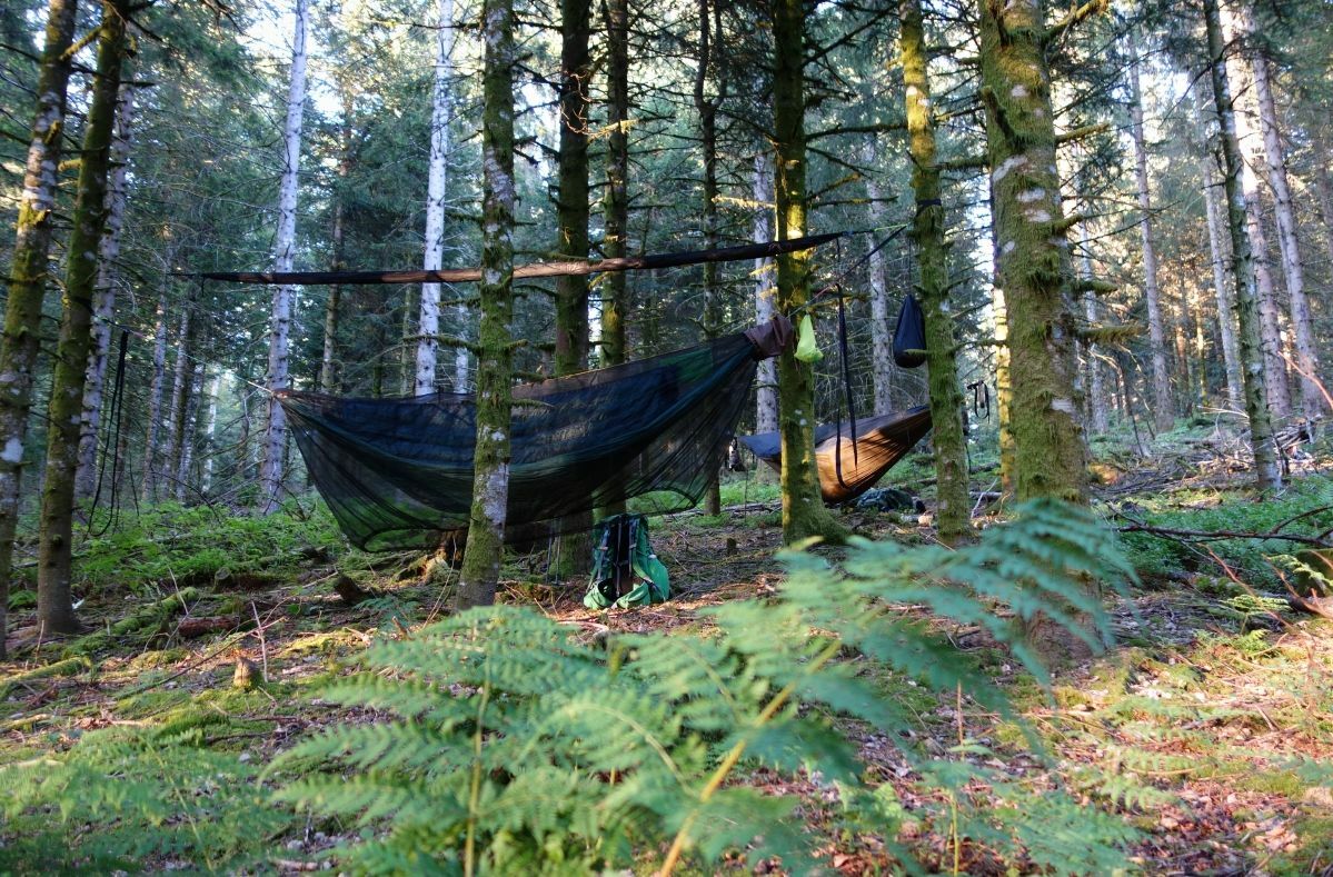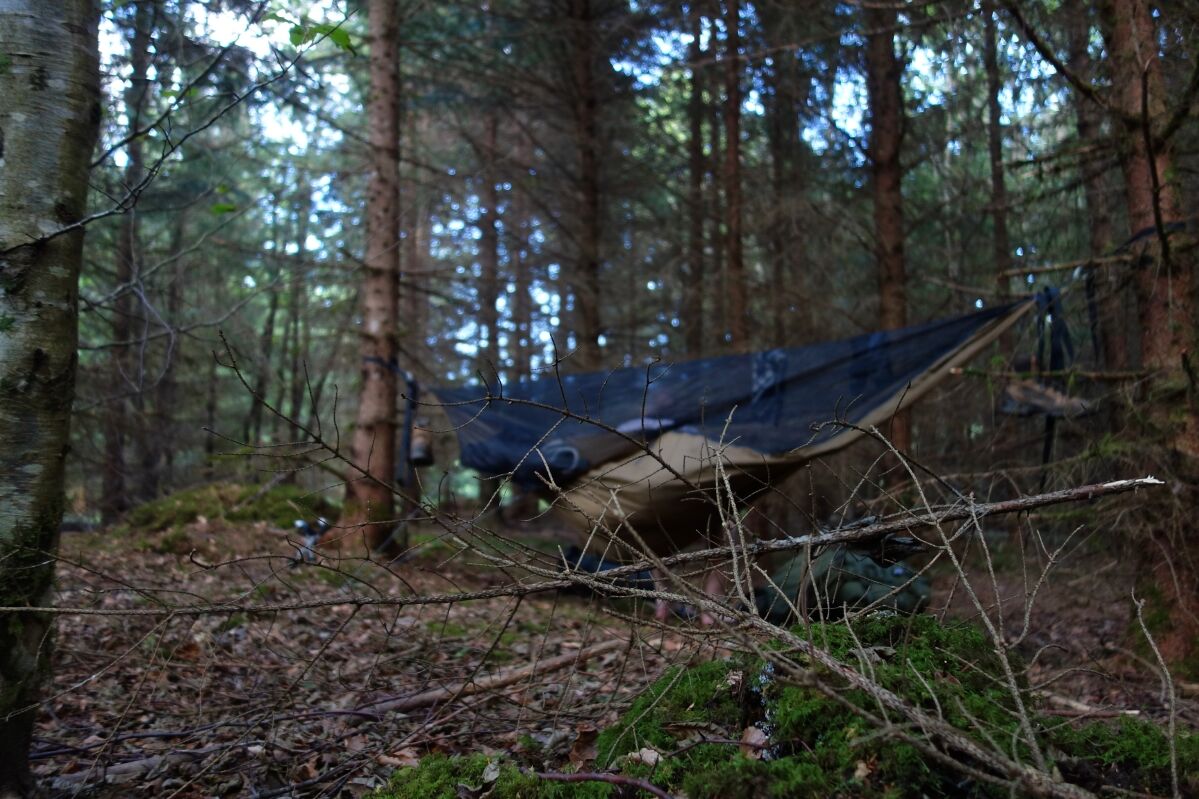 Wir hatten beide unsere Hängematten dabei: er seine Warbonnet Blackbird XLC und ich mein überarbeitetes Opus 2 aus dem Jahr 2016 (meine erste ganz ohne fremde Hilfe genähte Hängematte) mit dem ebenfalls überarbeiteten Moskitonetz im Fronkey-Style.