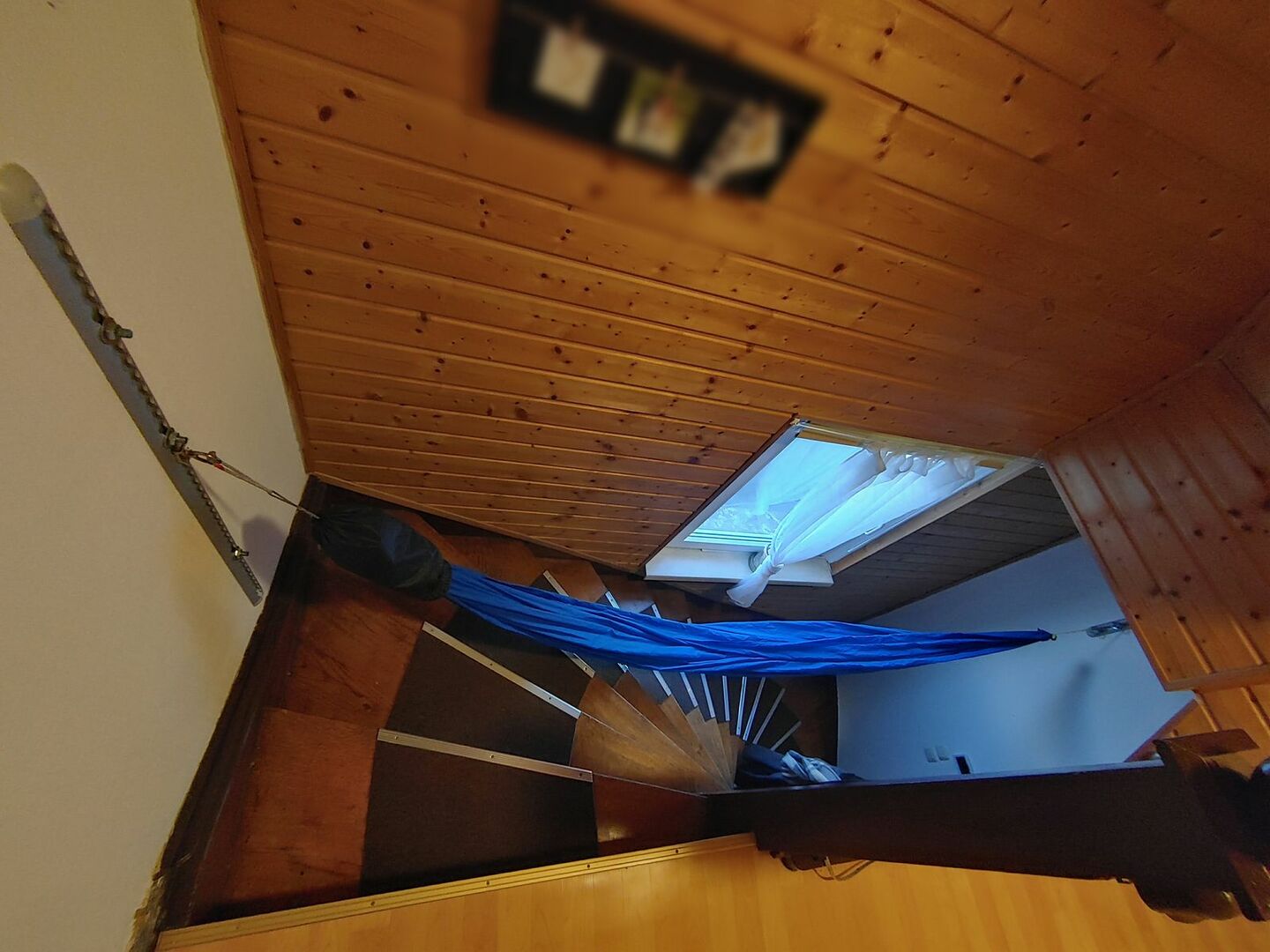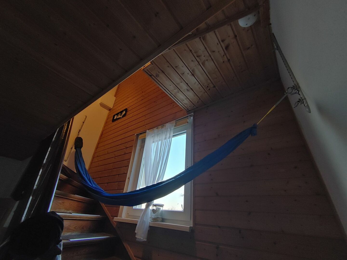 Ich hänge die Hängematte bisweilen auf dem Estrich auf.