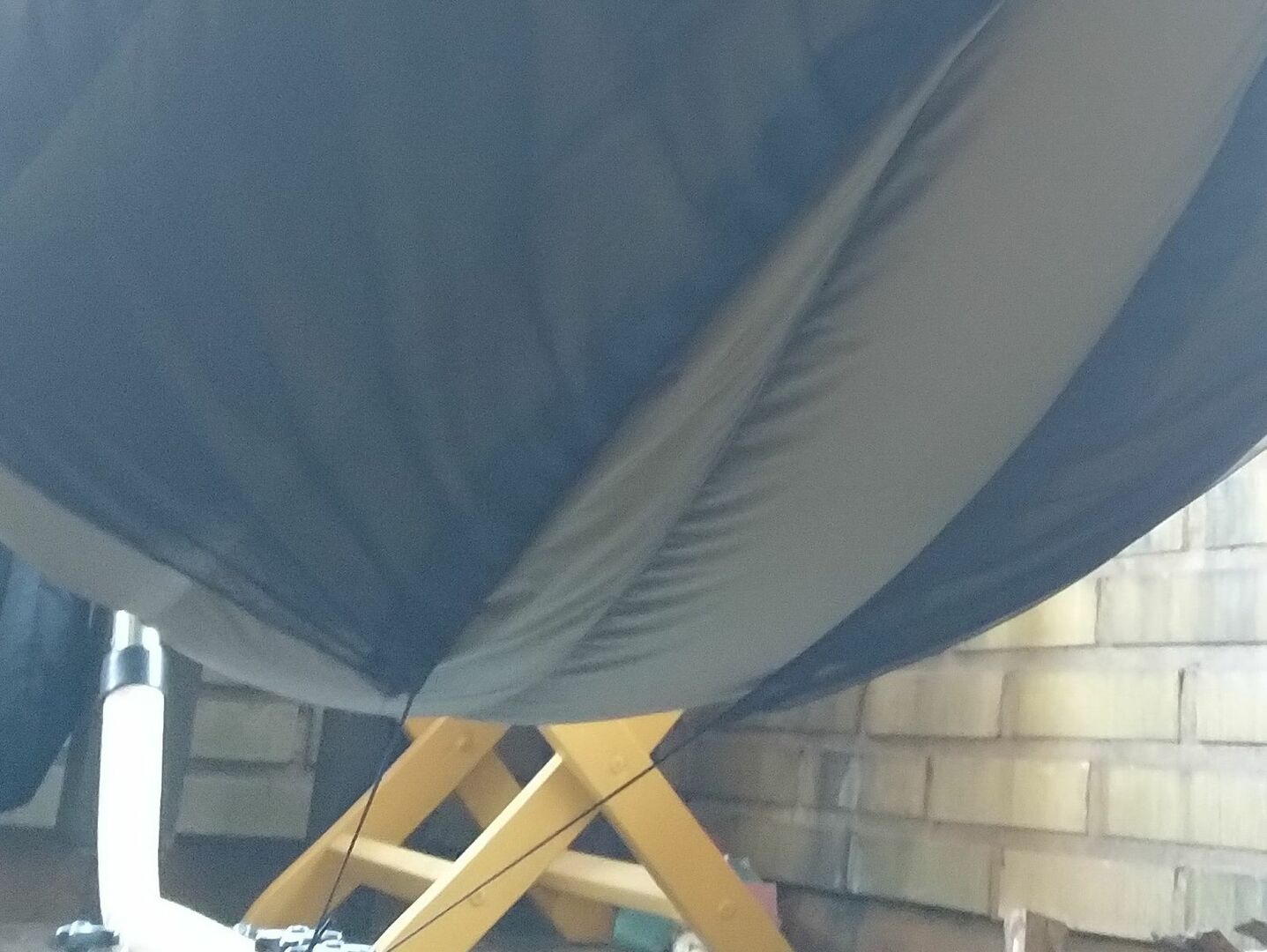 Andererseits empfiehlt es sich, im Bereich des Topquiltabschlusses noch 20cm weitere Stoffstreifen anzubringen, die dann überall sicher aufliegen und Spalten schließen würden. Mal sehen...