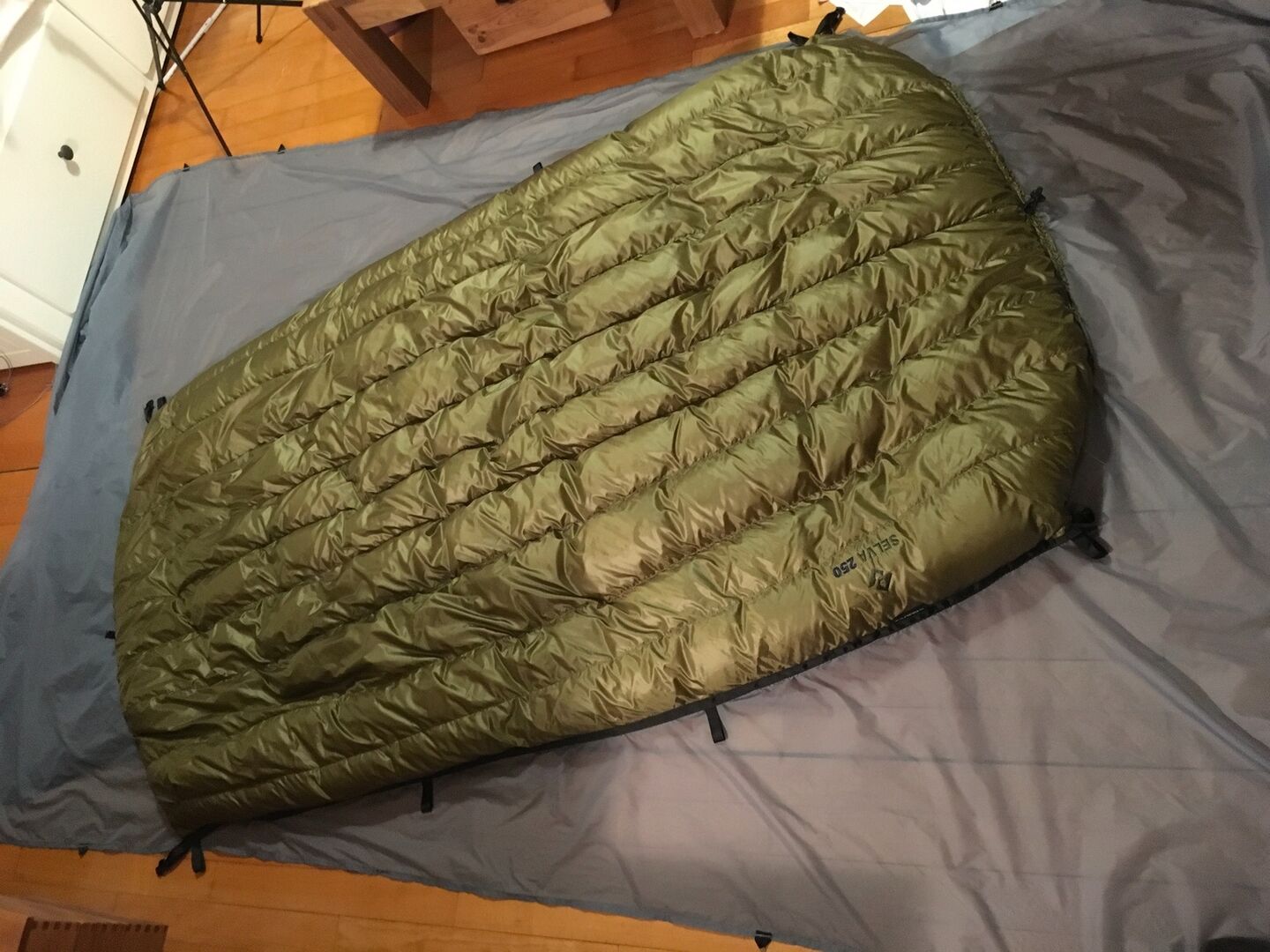 Über den groben Daumen gepeilt sollte 110*190cm Hülle aus 10D Ripstop (25g/qm) auf 120g kommen. Dann 120g Daune rein, Aufhängung schlägt natürlich noch zu buche und du kommst nah an den Selva 120 ran gewichtstechnisch. Der Stoff den die nutzen ist mit 19g/qm nochmal leichter - aber soweit ich weiß kaum zu bekommen als Privatabnehmer.