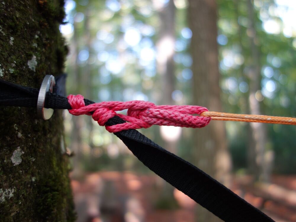 ich war gestern mal wieder mit der Hängematte unterwegs um Erfahrungen zu sammeln und musste erneut feststellen, dass sich meine Aufhängung nachträglich mit der Zeit abgesenkt hat. Letztendlich bin ich dann Nachts aufgestanden, um die Hängematte nach oben zu positionieren.