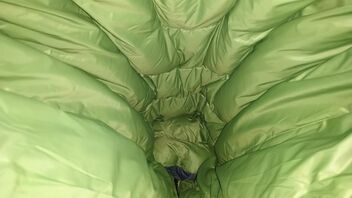 Der Kragen macht den Topquilt überhaupt erst mal zum "Wärmenden" Topquilt. Ohne Kragen musste man ständig nachbessern oder zu halten, dass nicht schon beim Heben und Senken des Zwerchfells zum Atmen ständig Luft rein und raus strömt. Kaum schlief man mal ein, wachte man leicht frierend wieder auf. Jetzt ist das komplett gelöst und der Quilt wärmt wie geplant bis in den Minusbereich.