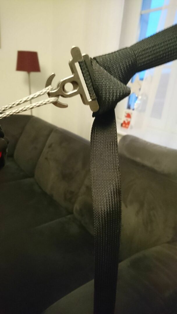 spricht etwas dagegen direkt den Karabiner durch den die Aufhängung zu ziehen.