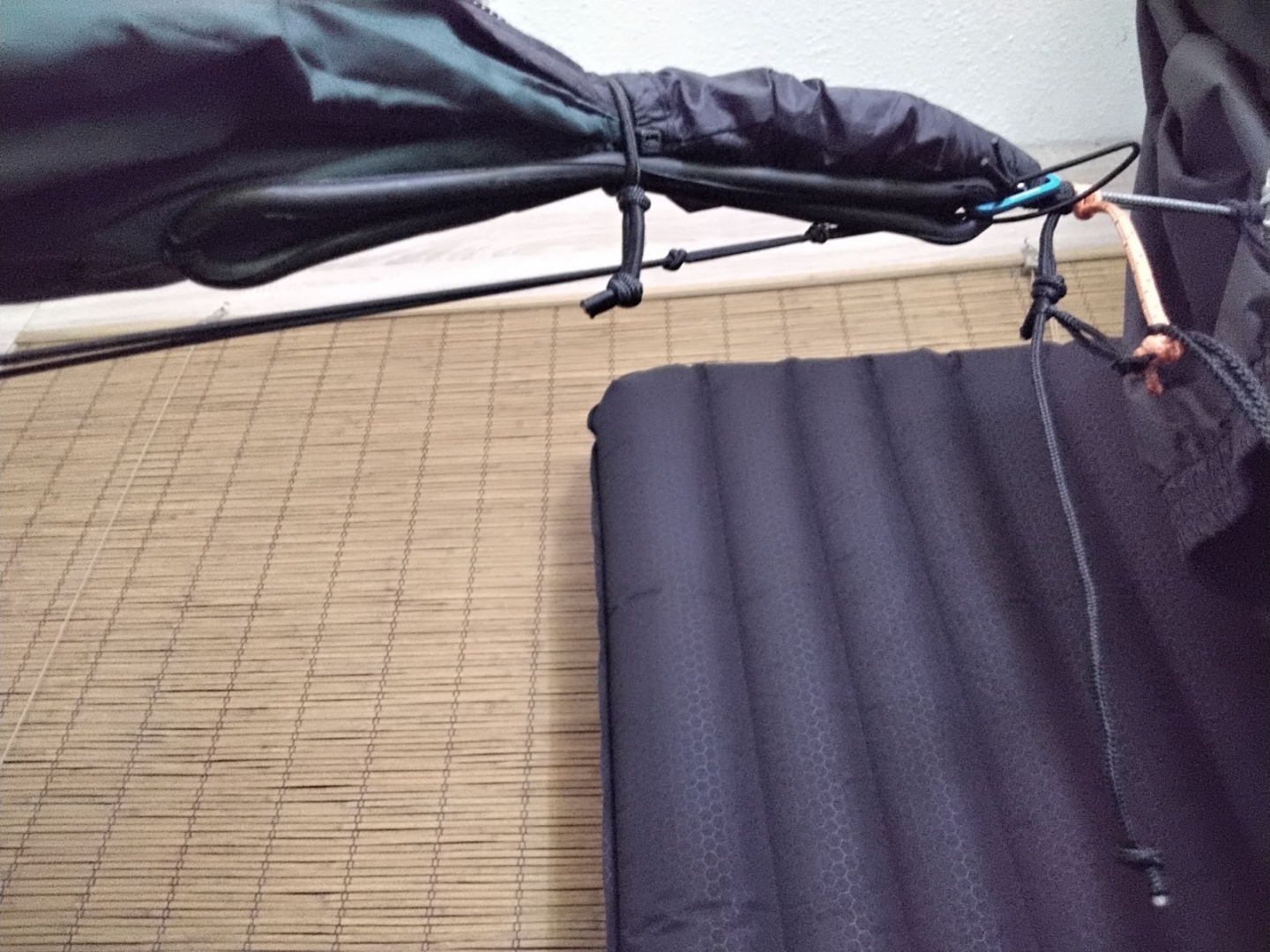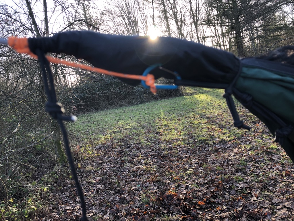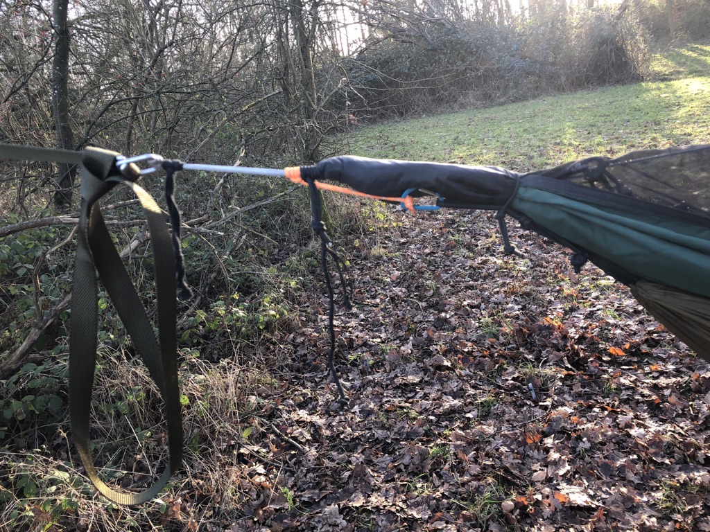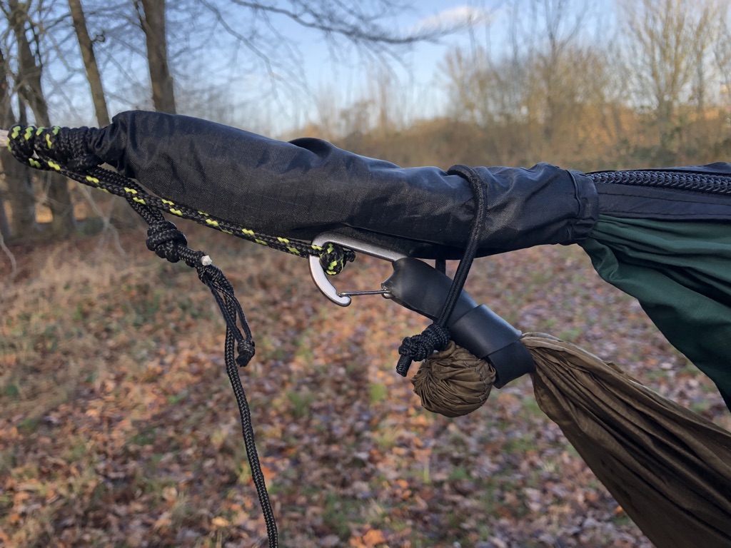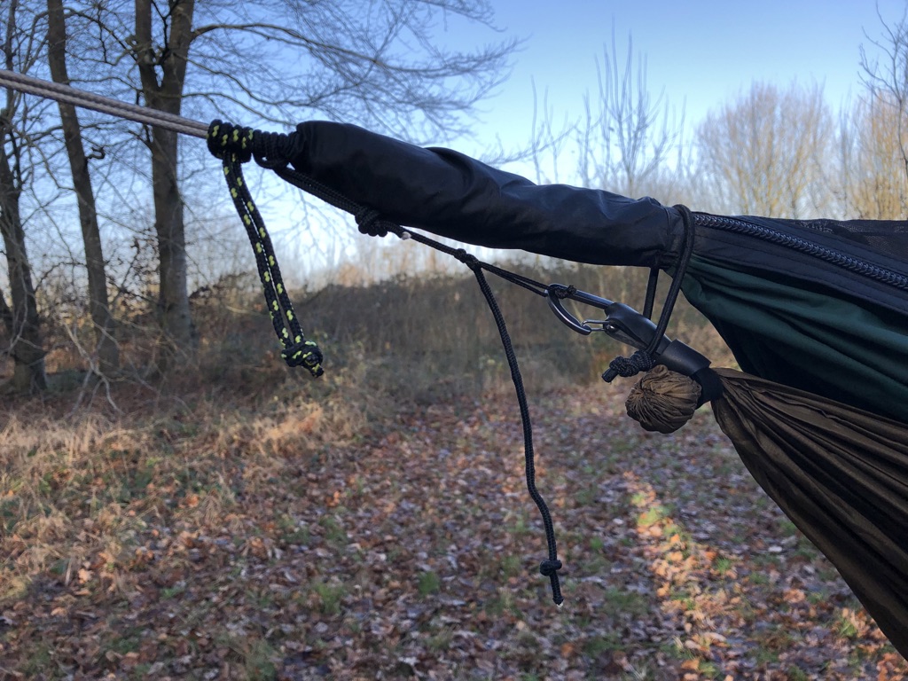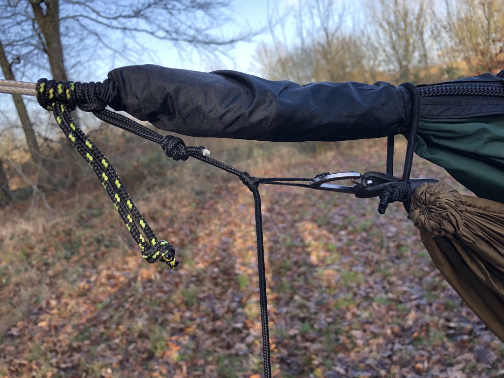 Ich habe auch erst die Hängematte so aufgehängt wie ich in ihr schlafe und habe dann die Pull Outs der Hm wieder gelöst.