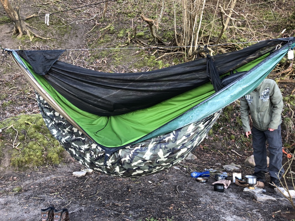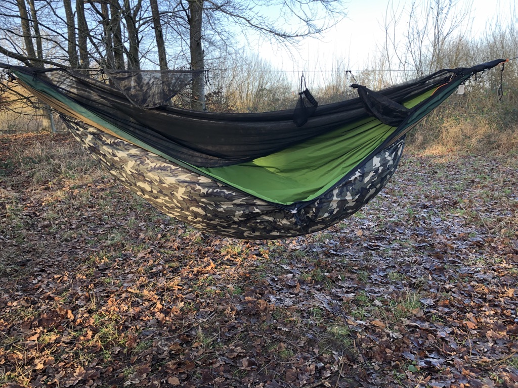 ich habe heute mal meinen neuen Skandinavien Wooki XL😃😊 von Hammock Fairy unter meine HH Jungle Safari XXL 12ft Hm gehängt.
