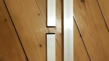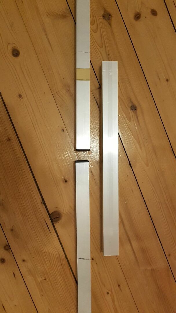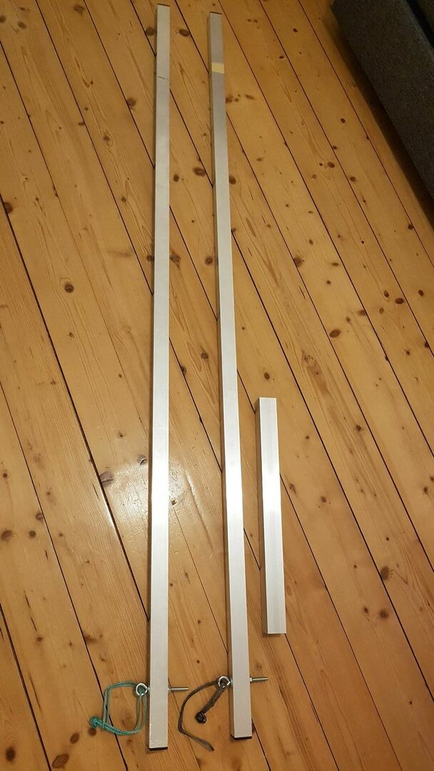 2x180cm mittig verbunden über eine 50cm lange Hülse ebenfalls aus Vierkant Aluprofil.