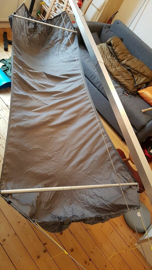 Leider ist mir das Kantholz beim einsteigen in die Brückenhängematte seitlich ausgebrochen, bei der GE wars kein Problem.