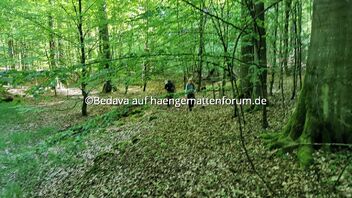 Wir sind einmal 4 km durchs Unterholz gegangen. Dann auf einen Zaun, wegen Anzucht von Jungen Baeumen gestoßen und noch mal 3 km aussen rum 😂